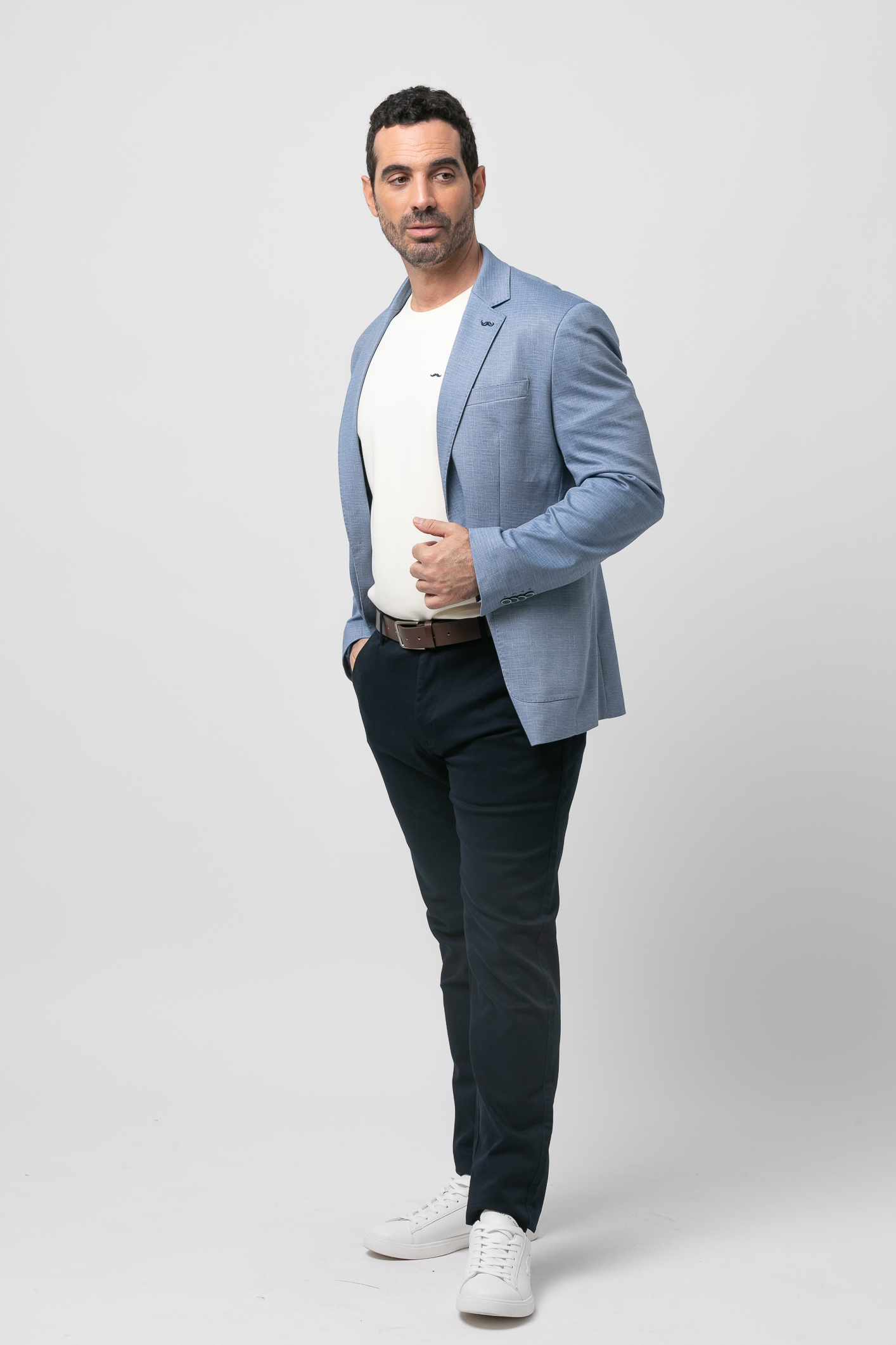 Americana sport tejido falso liso de gran calidad y confort con elastano. Americana corte regular con bolsillos de plaston y otro bolsillo a la altura del pecho con detalle. Cierre con dos botones. Solapa estándar o muesca y ojal y cierre con dos botones. Manga larga rematada con cuatro botones. Una abertura central en la parte posterior, forro y varios bolsillos interiores