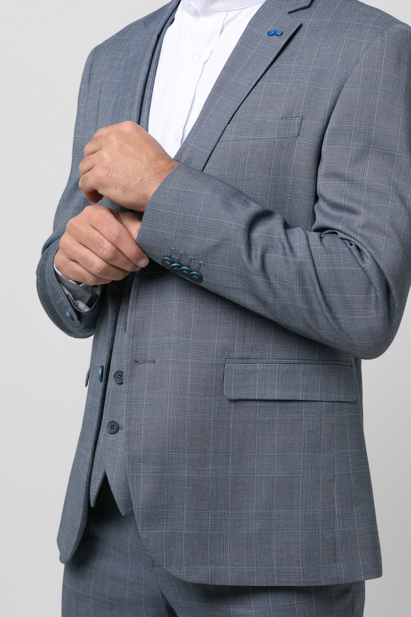 Americana de cuadros de poliéster y viscosa de alta calidad y comodidad con elastano . La americana tiene bolsillos de tapeta,y otro más pequeño y uno en el pecho con detalle, solapa de muesca, cierre de dos botones. Manga larga con cuatro botones, una abertura trasera, forro de fantasía y bolsillos interiores. Combínala con el pantalón Domador Ref. 2610113008 para completar el traje.