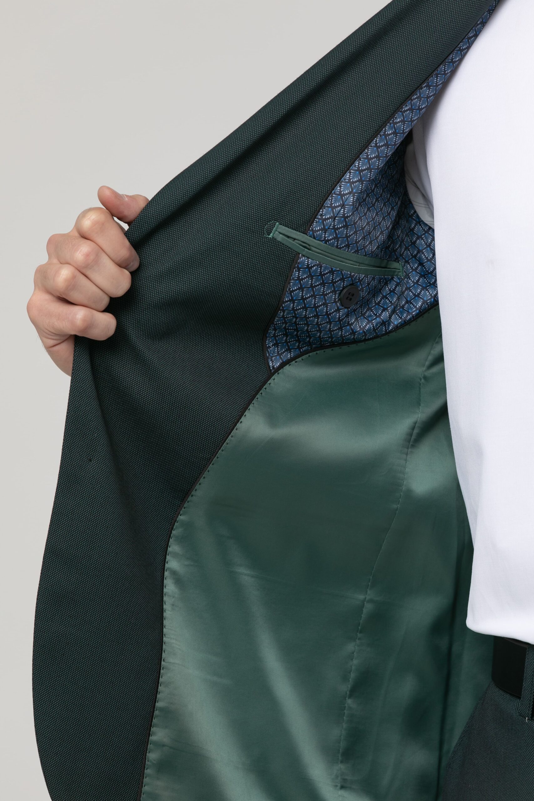 Americana de poliéster y viscosa de alta calidad y comodidad con elastano. La americana tiene bolsillos de tapeta, uno en el pecho con detalle, solapa pico, cierre de dos botones, manga larga con cuatro botones, una abertura trasera, forro de fantasía y bolsillos interiores. Combínala con el pantalón Lucien, Ref. 2610113006 para completar el traje.