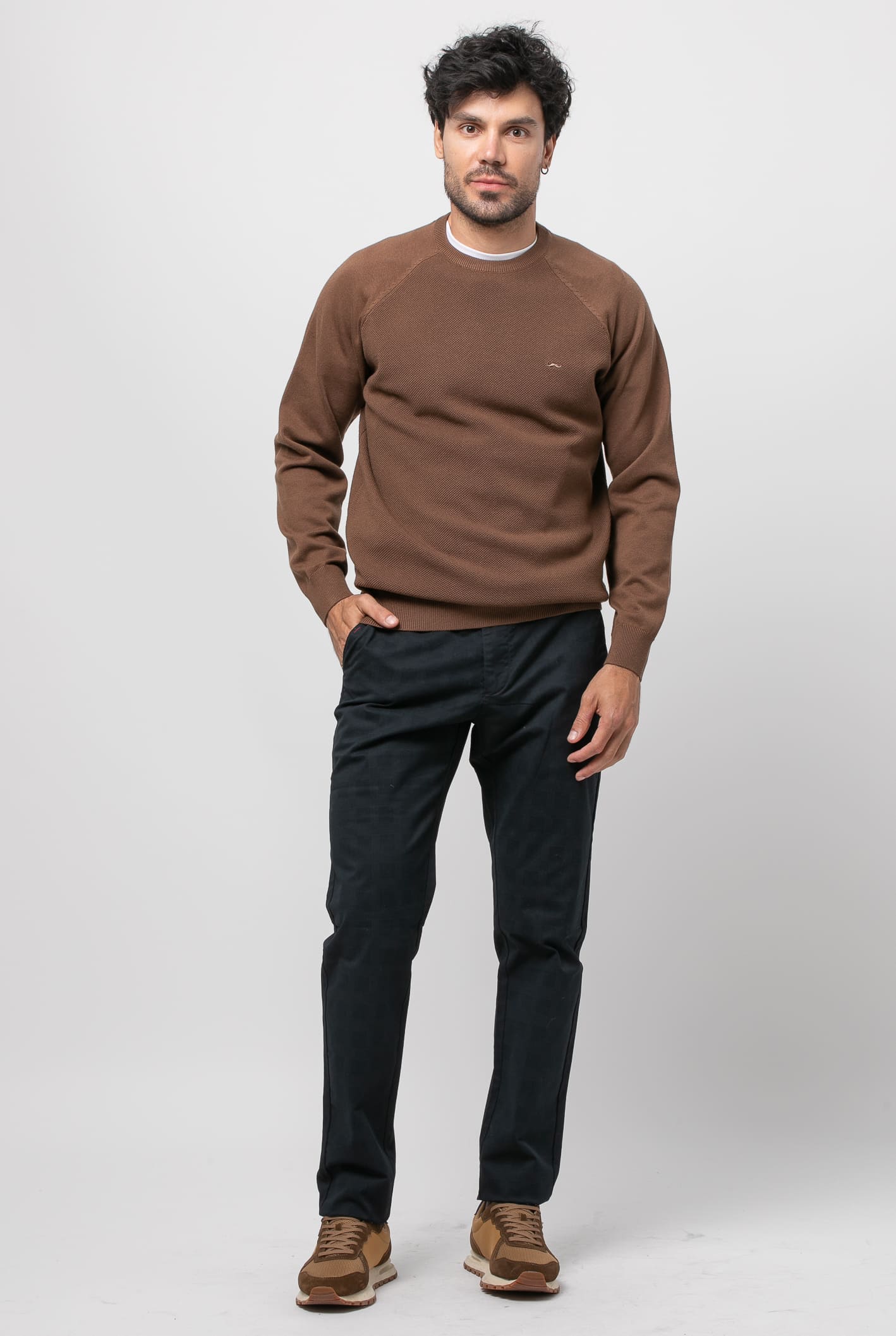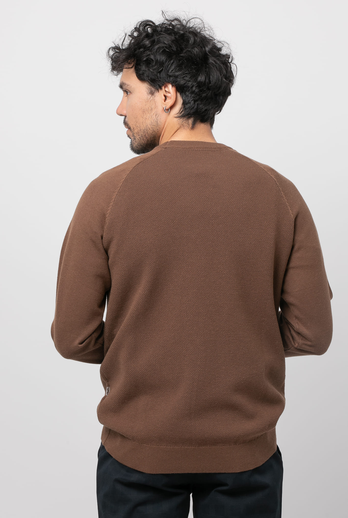 Jersey de estructura entrelazada, manga raglan lisa. Tejido mezcla , corte recto, cuello redondo, manga larga y acabados acanalados.