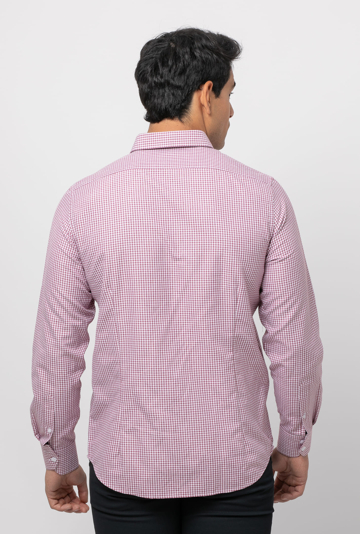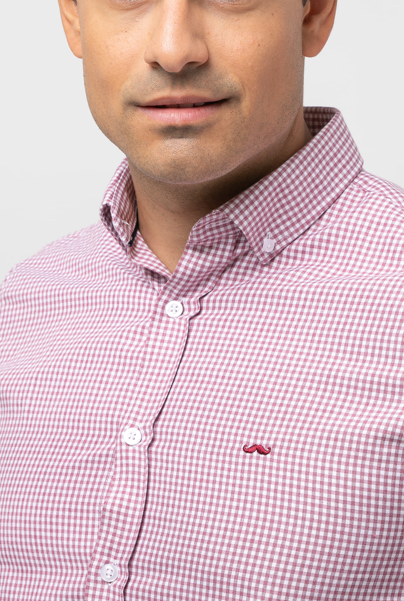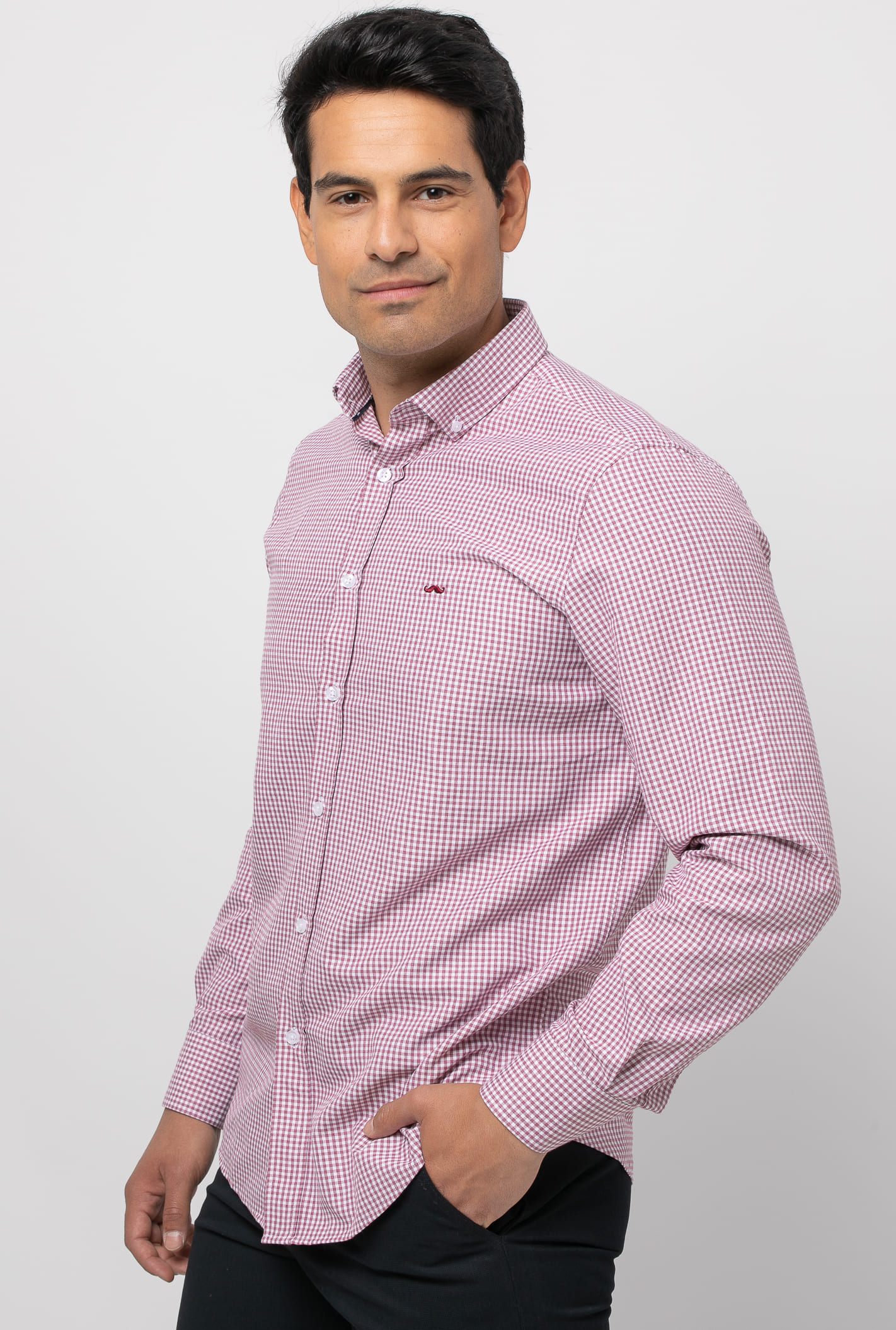 Camisa sport cuadros, Slim fit con pinzas traseras, cuello botón, cierre frontal con tapeta y botones, manga larga con puños abotonados y bordado de la marca en el pecho en contraste