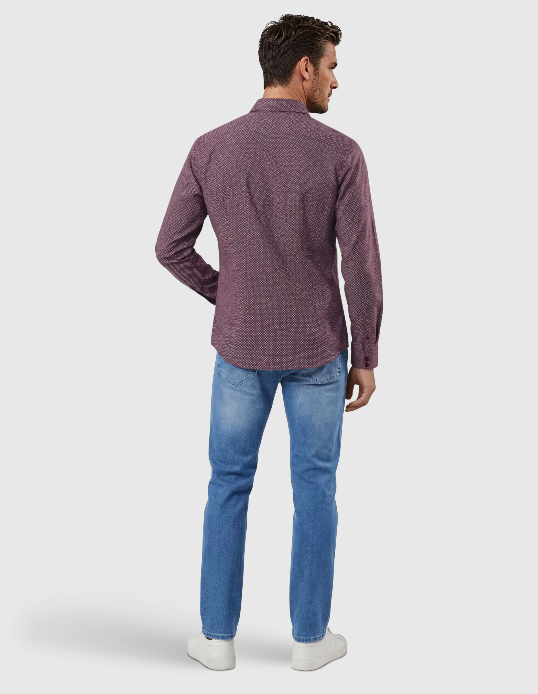 Camisa estampada Slim fit en tejido 100% algodón, con cuello con botones, cierre frontal de botones, manga larga con puños abotonados y bordado a contraste de la marca en el pecho.