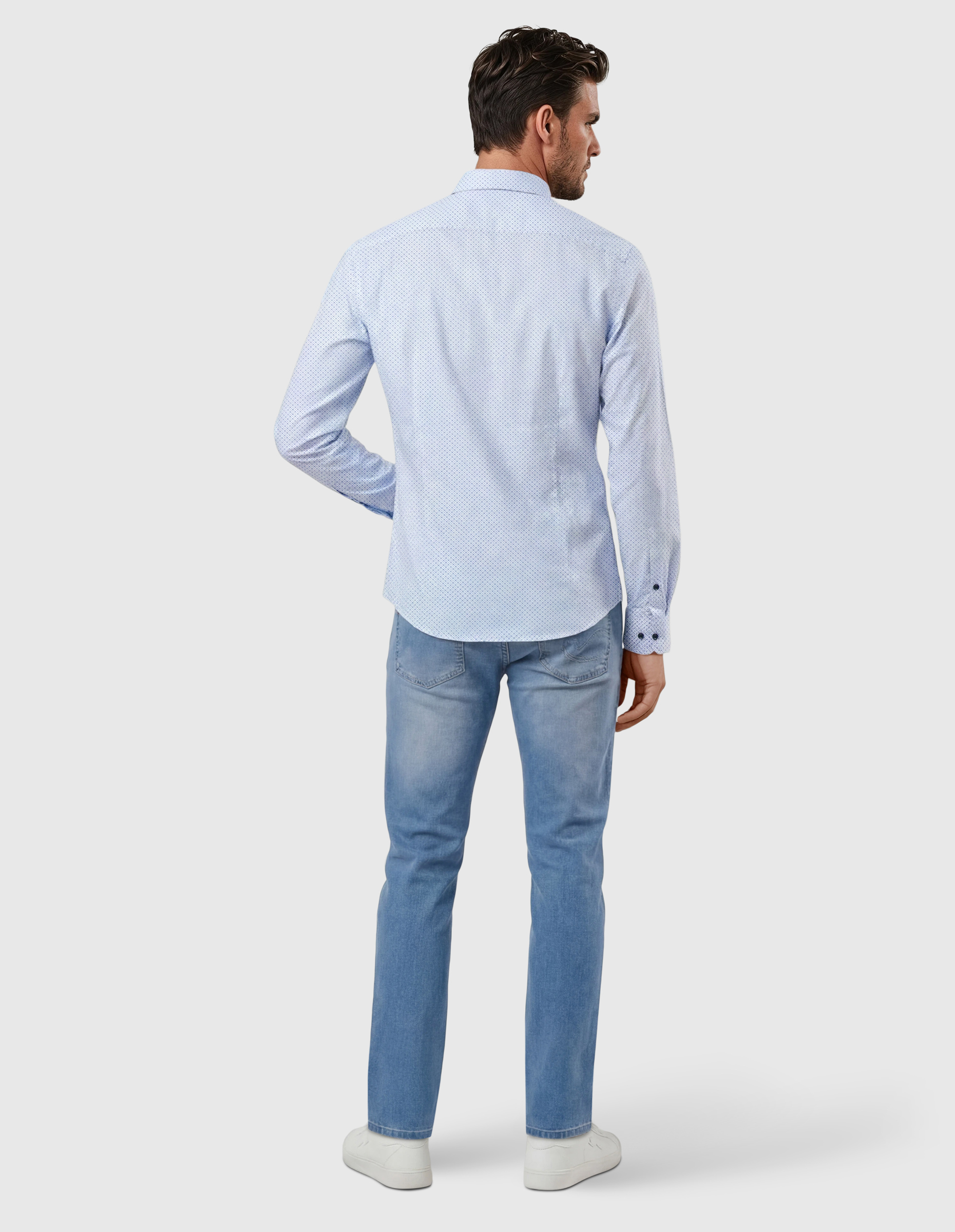 Camisa estampada Slim fit en tejido mezcla, con cuello con vivo a contraste y botones, cierre frontal de botones, manga larga con puños abotonados y bordado de la marca a contraste en el pecho.