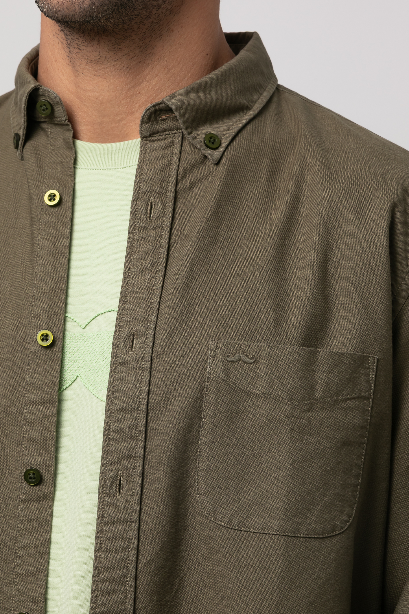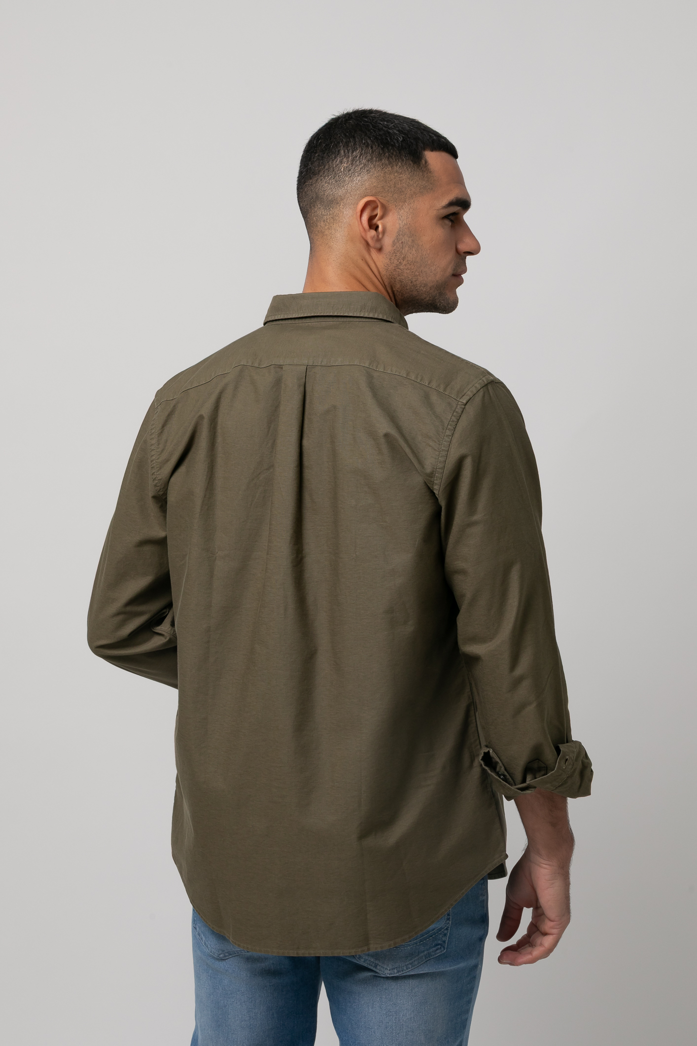 Camisa algodón lavado sport , Slim fit con pinzas en la espalda,cuello botón, cierre frontal de botonesen tapeta , manga larga con puños abotonados y bordado de la marca al tono en el bolsillo del pecho