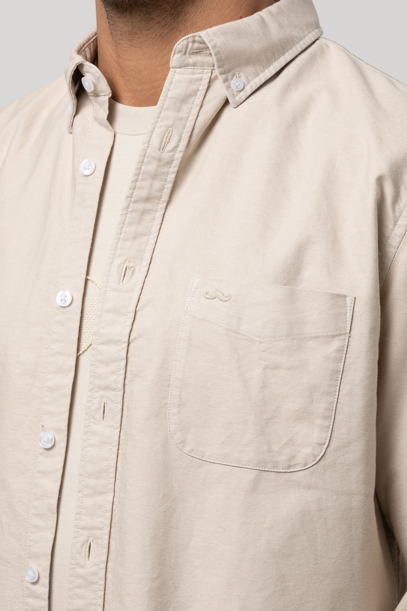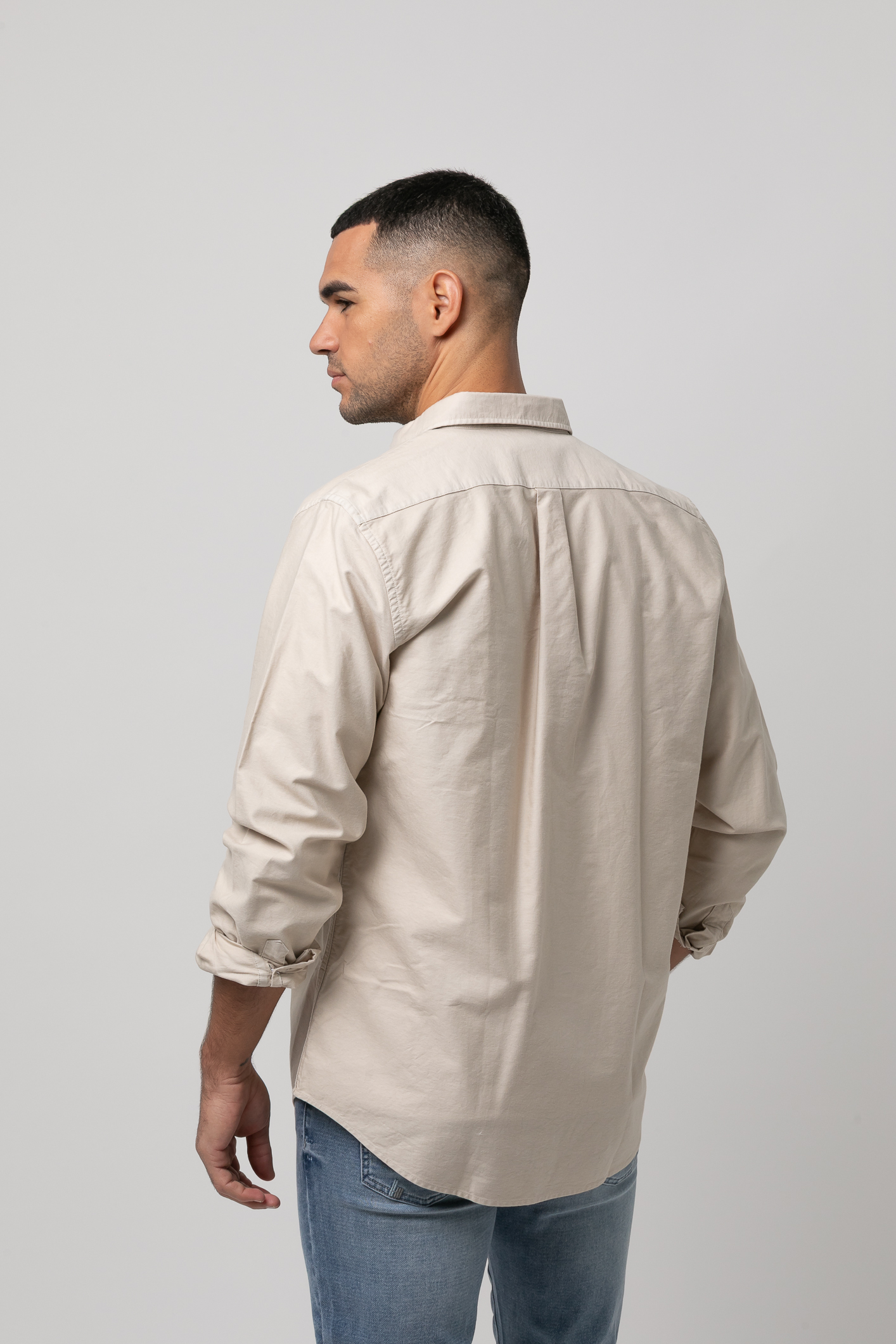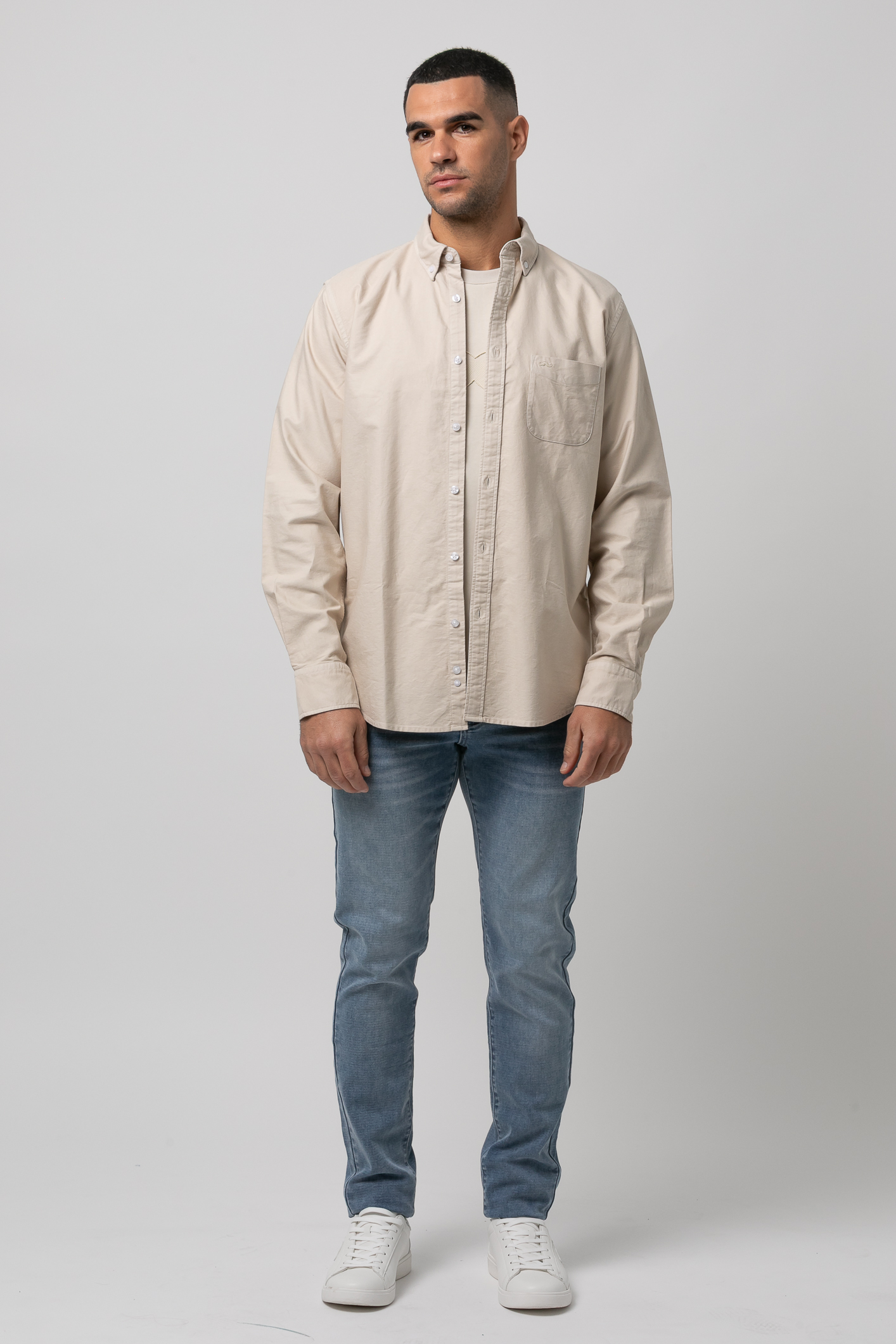 Camisa algodón lavado sport , Slim fit con pinzas en la espalda,cuello botón, cierre frontal de botonesen tapeta , manga larga con puños abotonados y bordado de la marca al tono en el bolsillo del pecho
