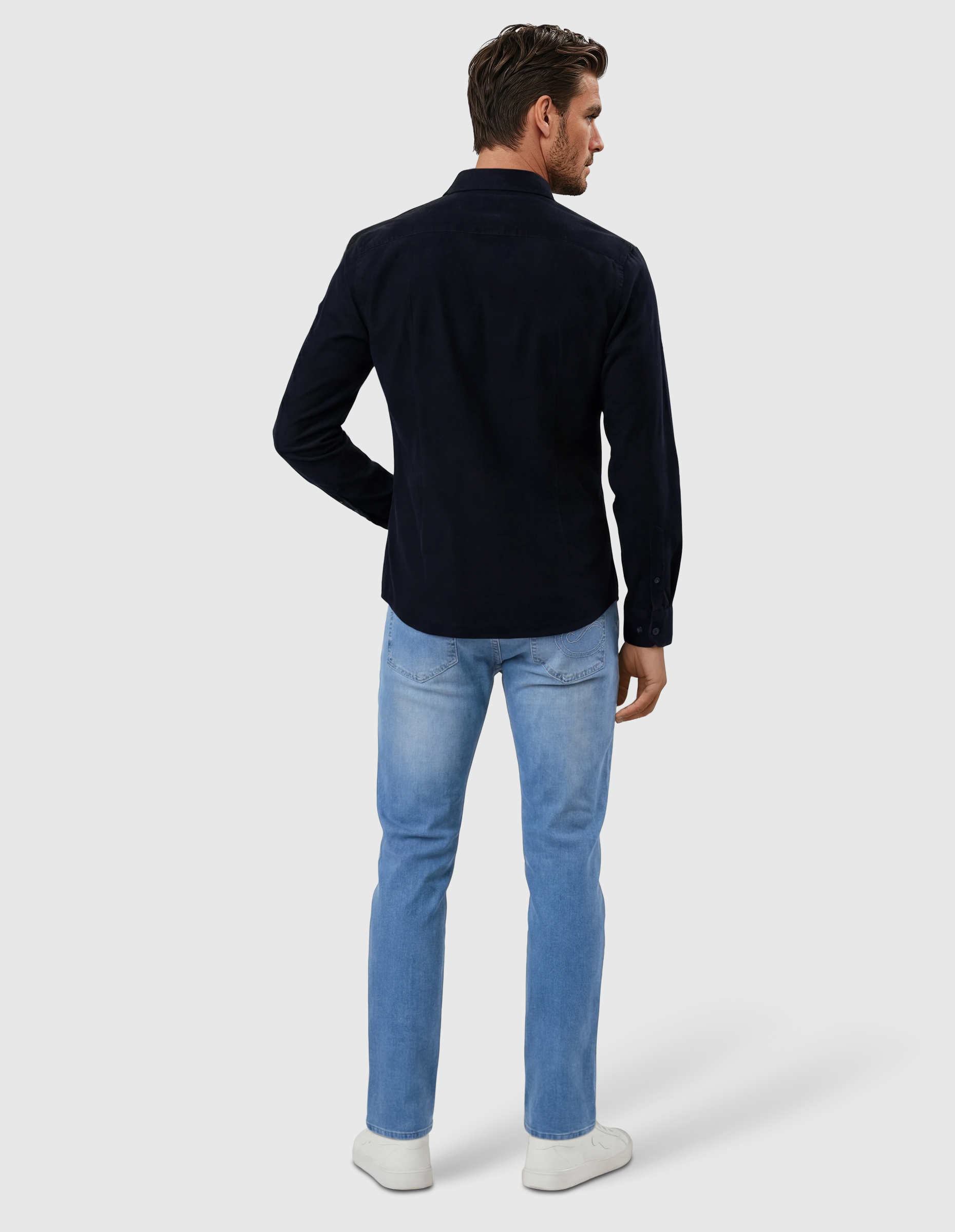 Camisa de micropana, Slim fit con pinzas en la espalda en tejido 100% algodón con cuello con botones, cierre frontal de botones, manga larga con puños abotonados y bordado de la marca en el pecho al tono.