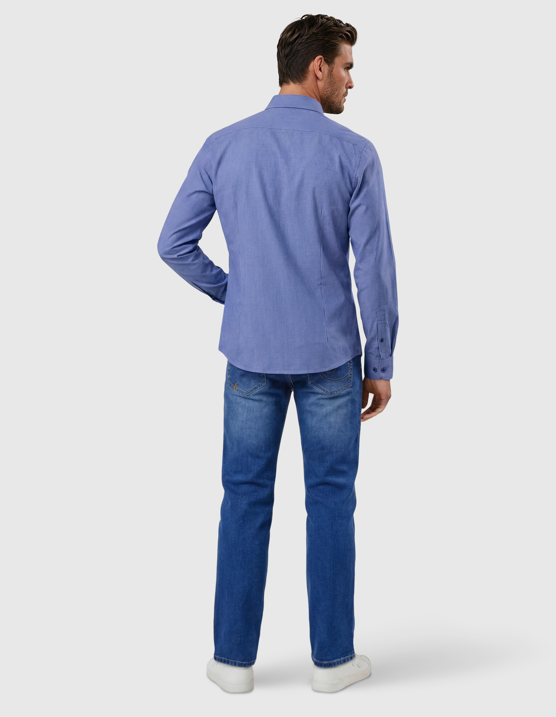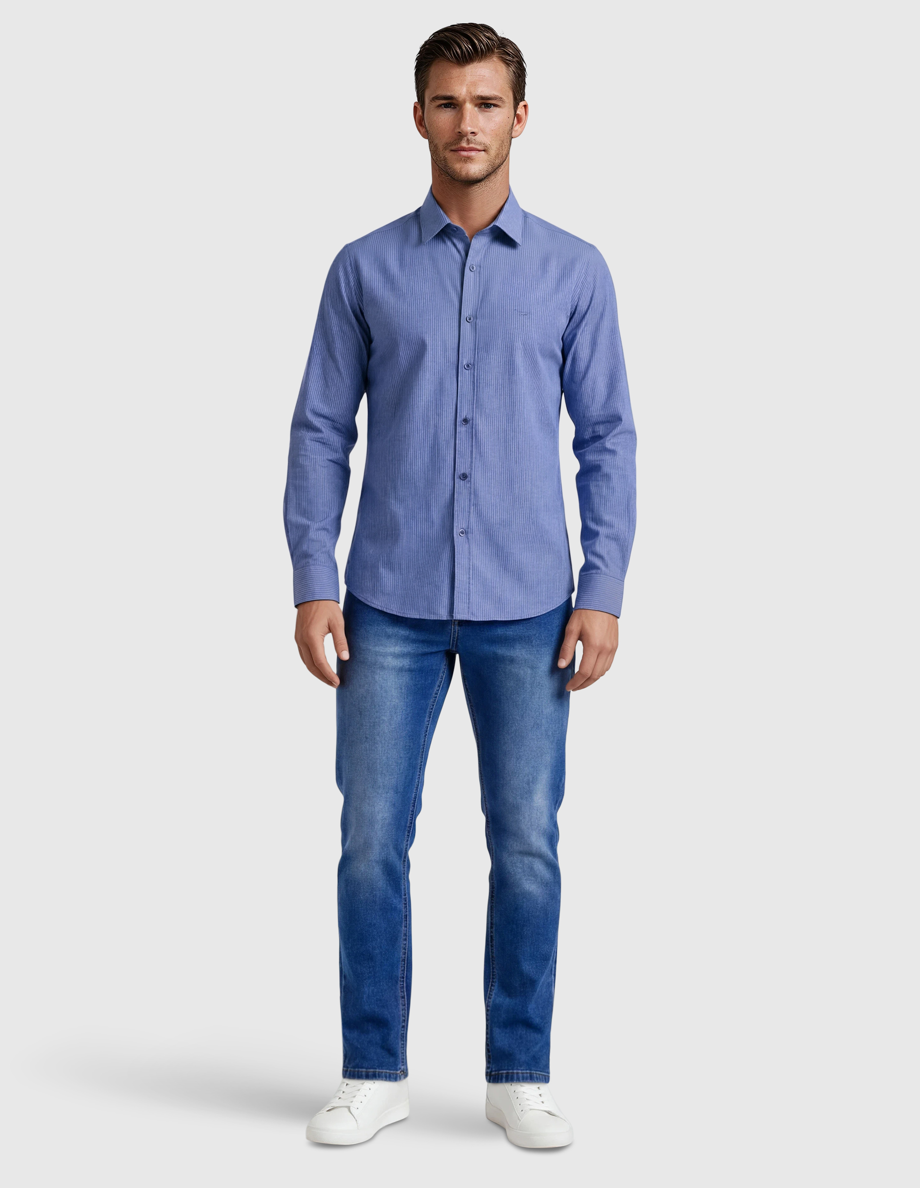 Camisa estampada rayas Slim fit, con cuello vestir, cierre frontal de botones, manga larga con puños abotonados y bordado de la marca en el pecho.