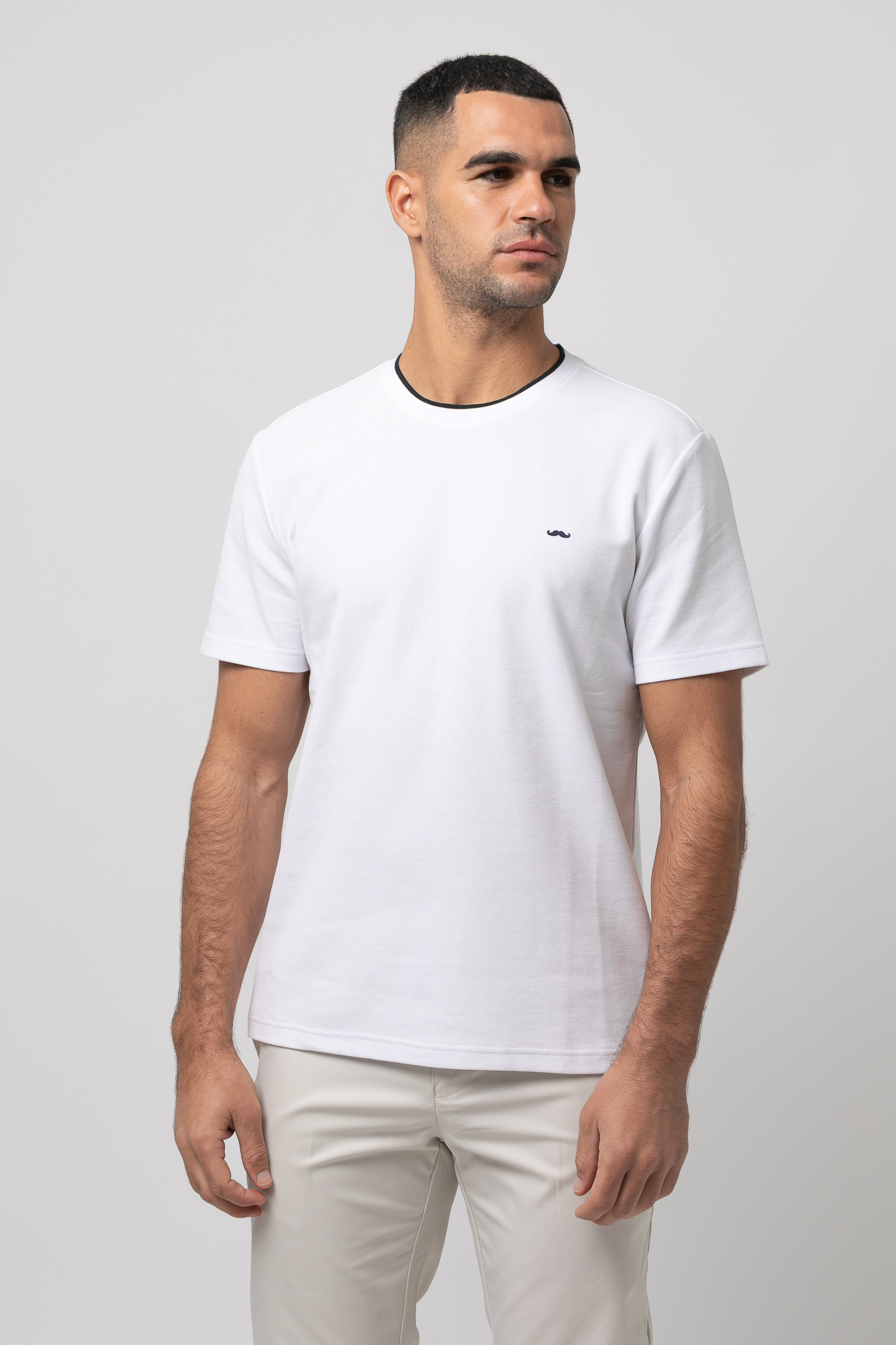 Camiseta lisa tejido piqué de gran calidad y confort, corte casual, cuello redondo con contraste y manga corta. Logo de la marca bordado en el pecho