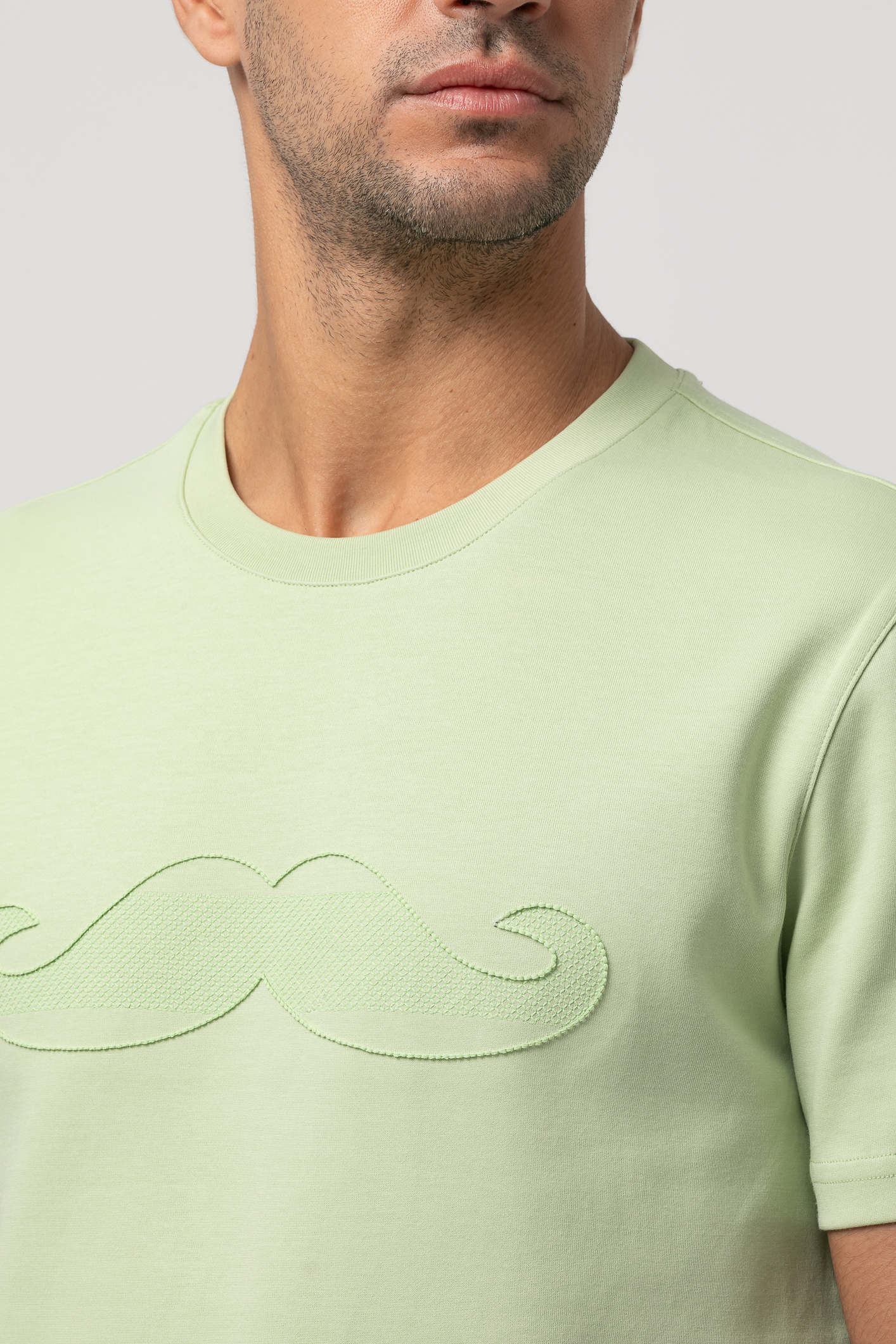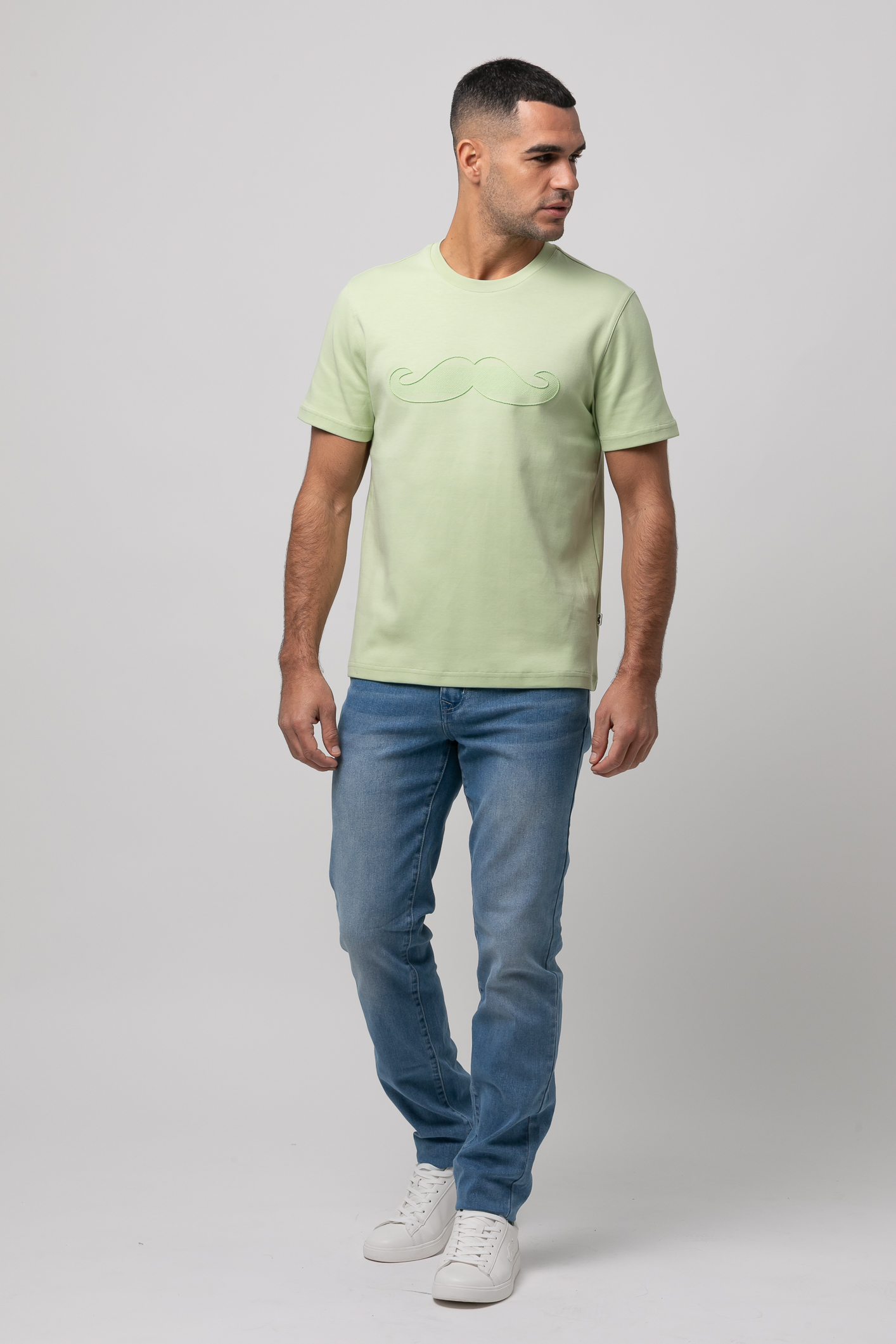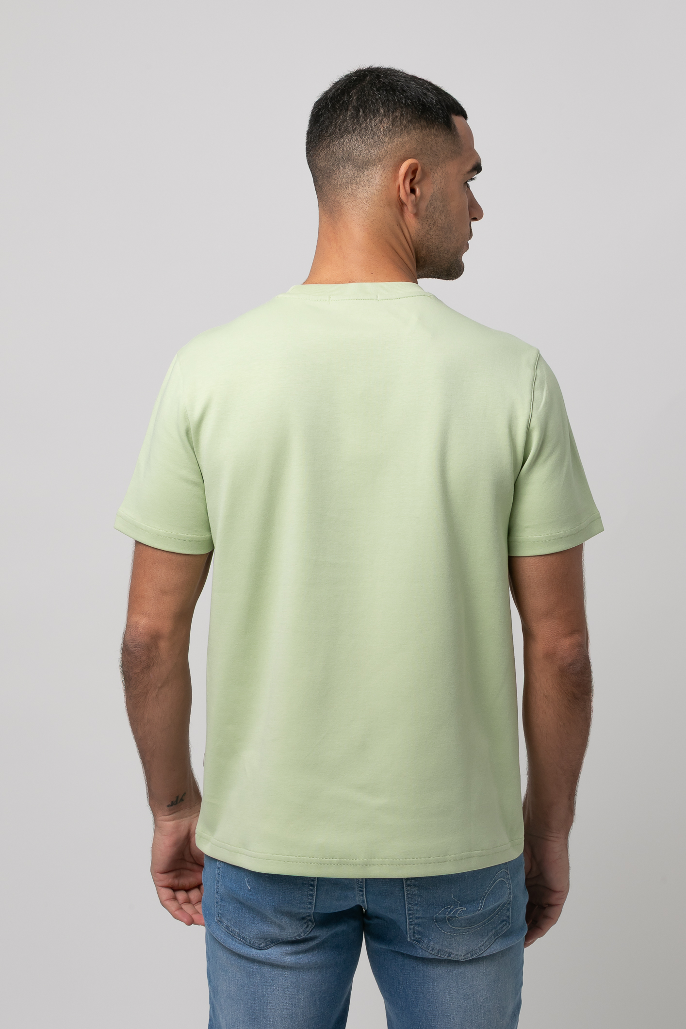 Camiseta lisa de algodón confort, corte casual, cuello redondo, manga corta y detalle de logo bordado en el pecho