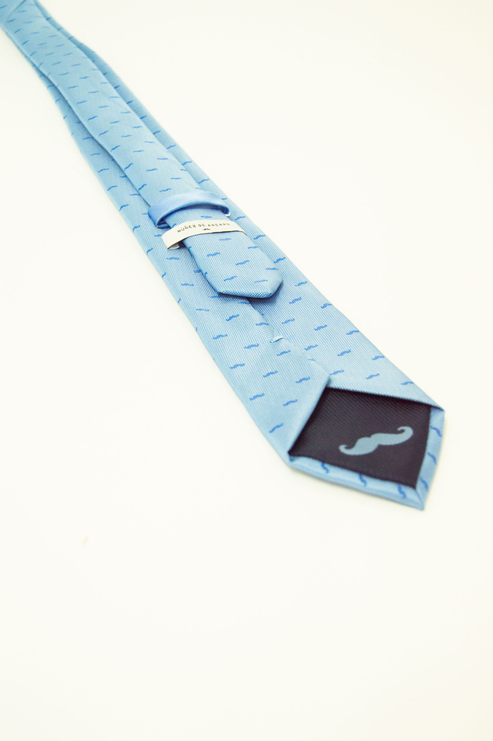 Corbata con terminación en pico tejido. Dibujo de bigotes. 7cm de ancho.