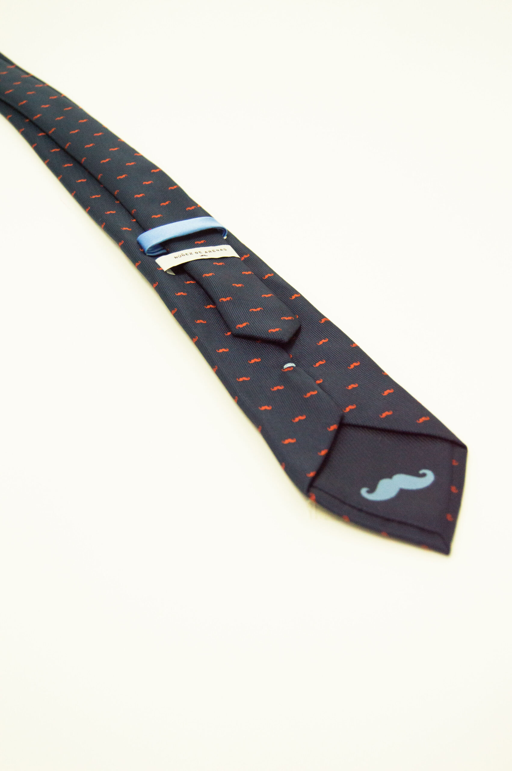 Corbata con terminación en pico tejido. Presenta diseño de dibujo de bigotes y 7cm de ancho.