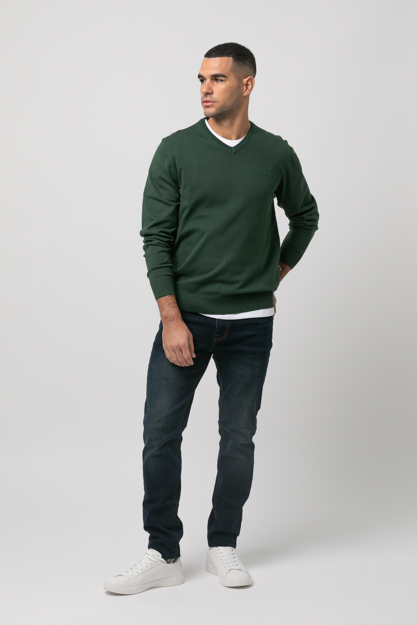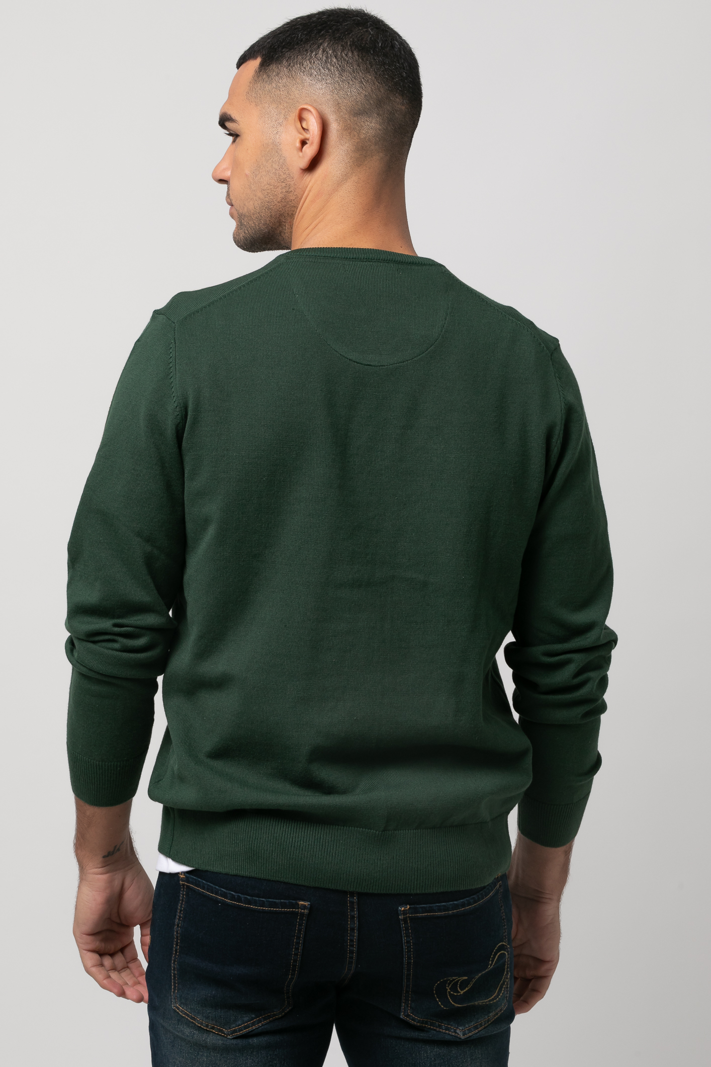 Jersey de corte recto con cuello pico corto y manga larga. Acabados en rib. Logo de la marca situado en el pecho al tono. Acabado BCI.