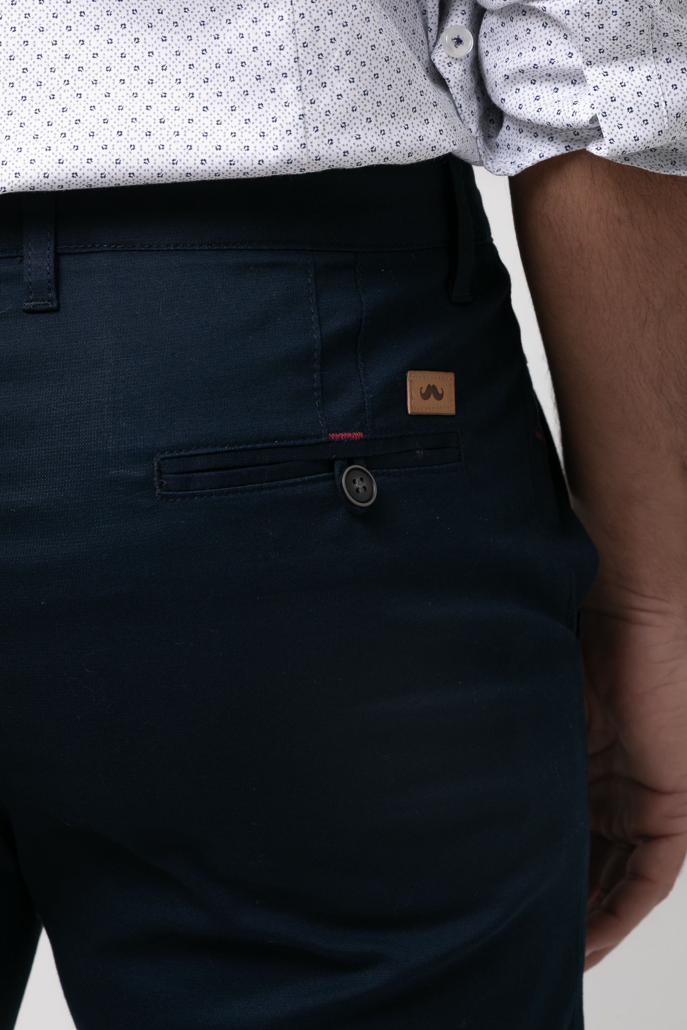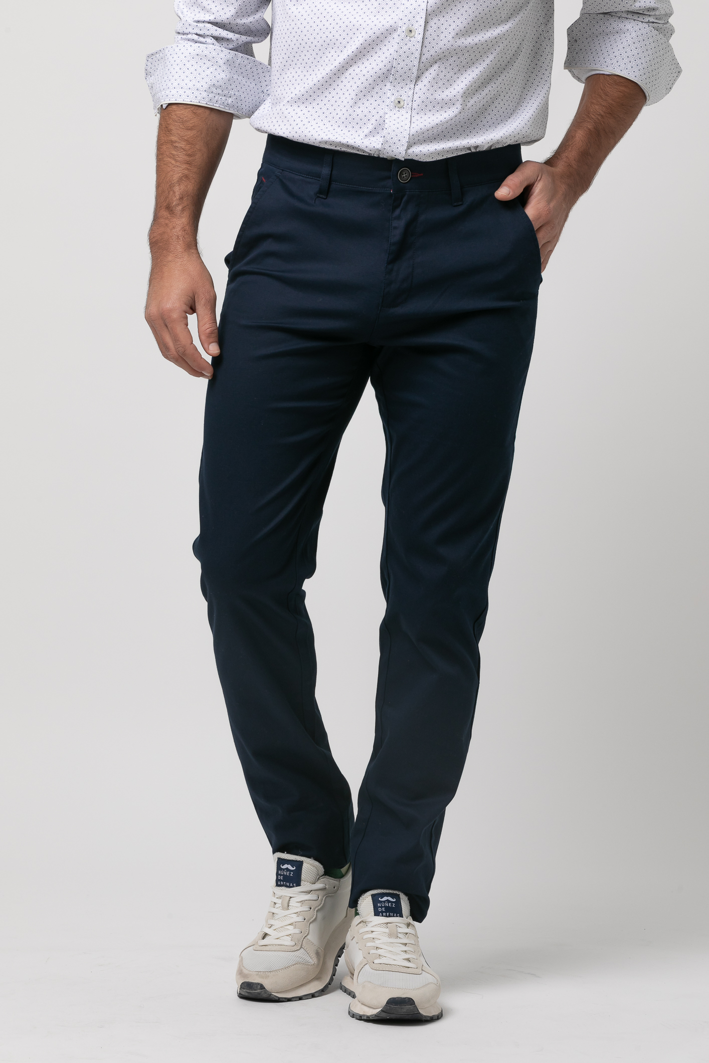 Pantalón Slim con algodón tejido mezcla algodón, cierre de cremallera oculta y botón. Dos bolsillos laterales, dos traseros abotonados, trabillas para cinturón y forro interior.