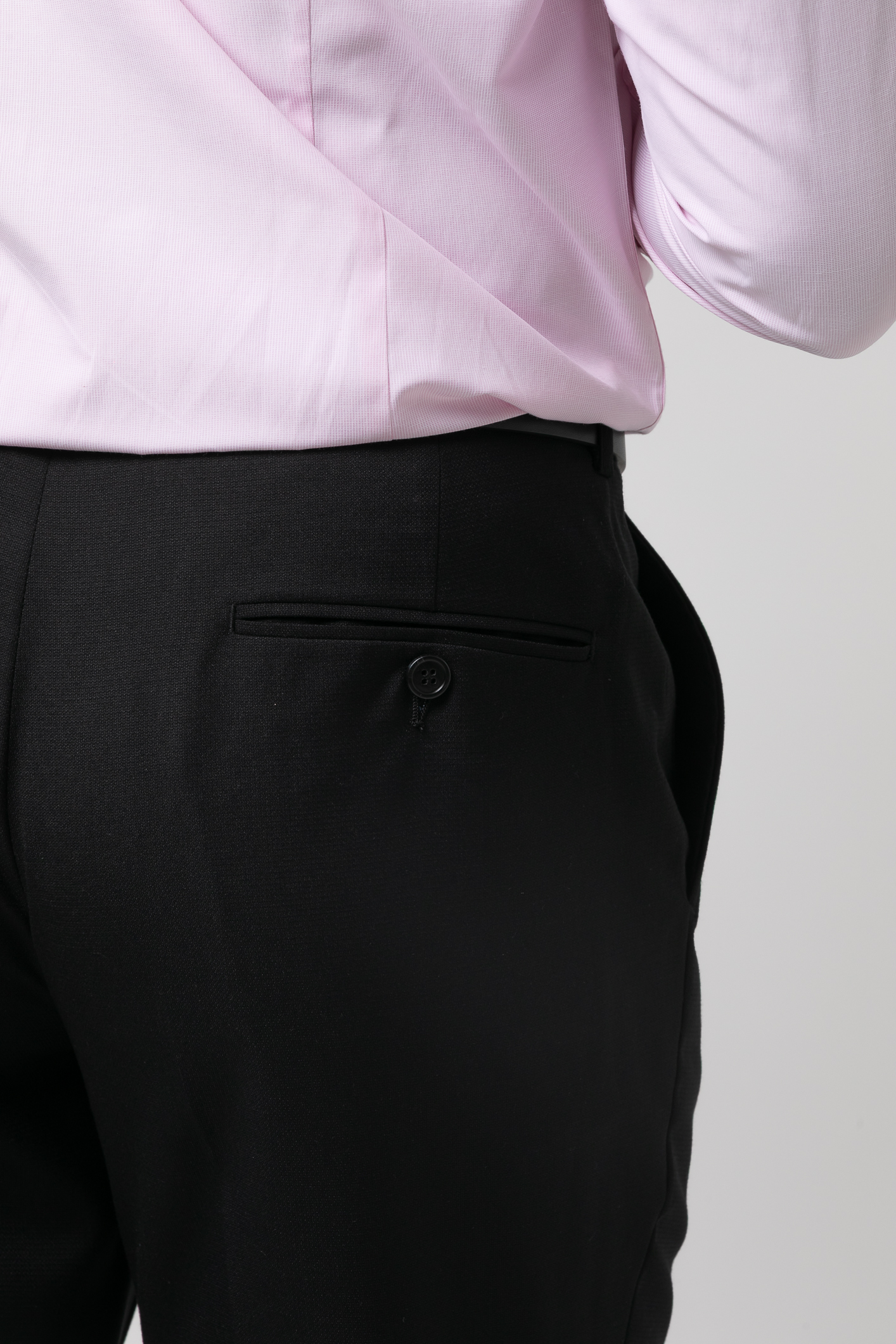 Pantalón Slim fit confeccionado en poliéster/viscosa de alta calidad, con tejido elástico para mayor comodidad. Cuenta con cierre de botón, gancho y cremallera, trabillas para cinturón. Con un sistema de ensancha único que hace ganar media talla adicional gracias a una goma interior oculta, dos bolsillos laterales y dos bolsillos traseros con botón. Ancho de tobillo de 17,5 cm en la talla 46. Combínalo con la americana Analista Ref. 2611406001 para completar el traje.