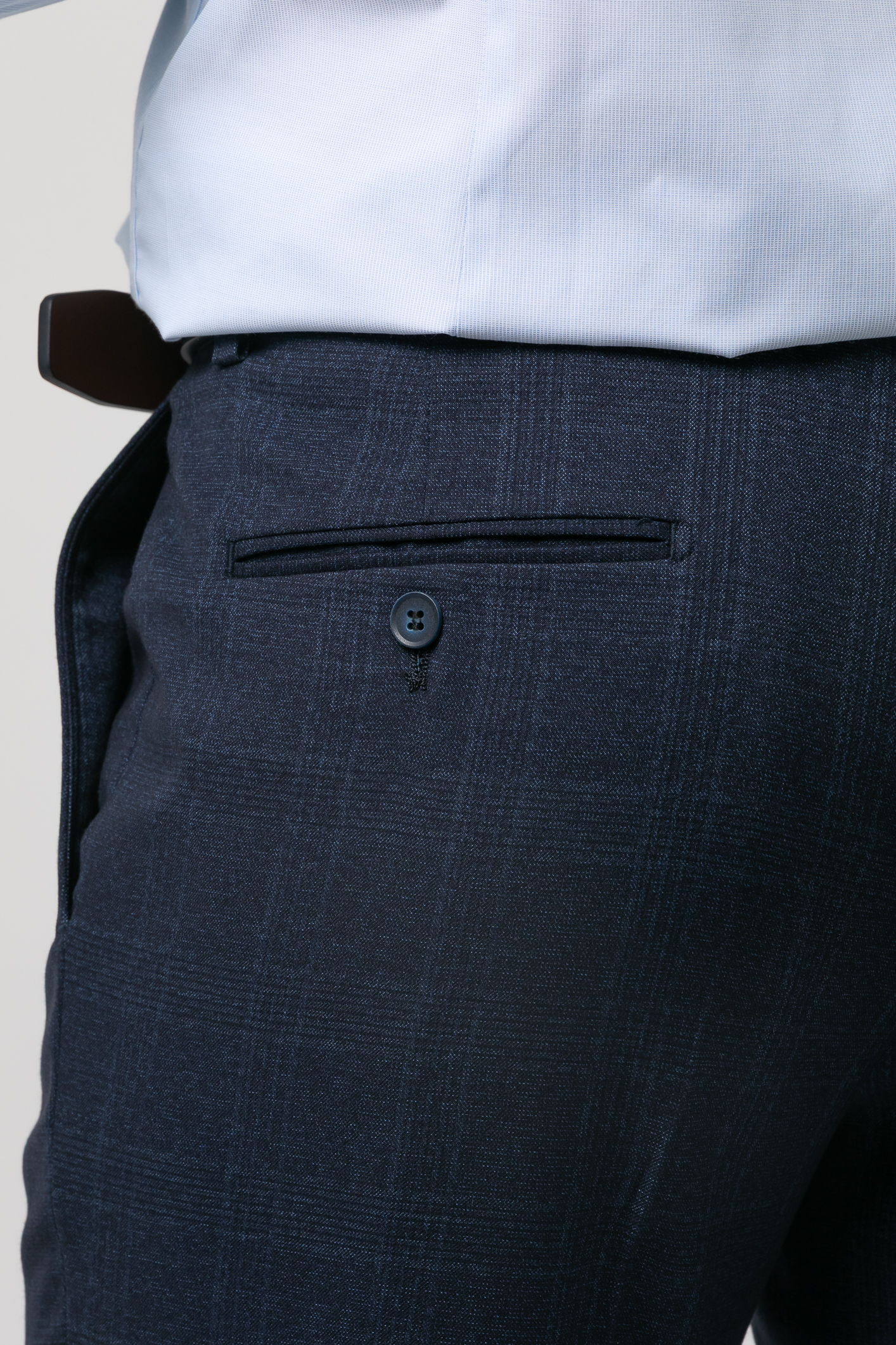 Pantalón Slim fit confeccionado en poliéster/viscosa y elastano de alta calidad, con tejido elástico para mayor comodidad. Cuenta con cierre de botón, gancho y cremallera, trabillas para cinturón. Con un sistema de ensancha único que hace ganar media talla adicional gracias a una goma interior oculta, dos bolsillos laterales y dos bolsillos traseros con botón. Ancho de tobillo de 17,5 cm en la talla 46. Combínalo con la americana Curtidor, Ref. 2611407001 para completar el traje.