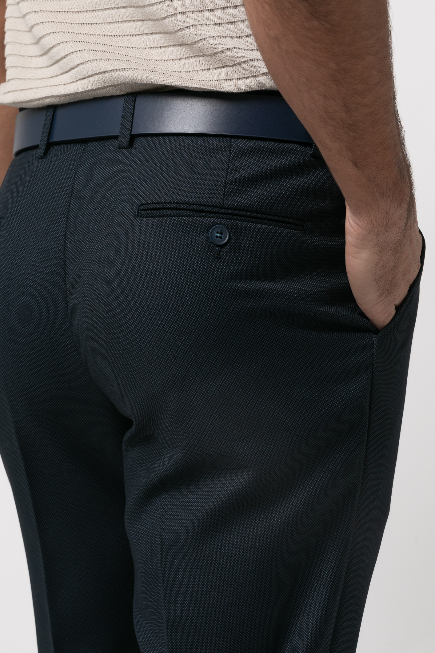 Pantalón Slim fit confeccionado en poliéster y viscosa de alta calidad. Cuenta con cierre de botón, gancho y cremallera, trabillas para cinturón, con un sistema de ensancha único que hace ganar media talla adicional gracias a una goma interior oculta, dos bolsillos laterales y dos bolsillos traseros con botón. Ancho de tobillo de 17,5 cm en la talla 46. Combínalo con la americana Hornero Ref. 2611406003 para completar el traje.