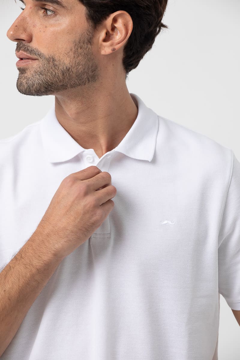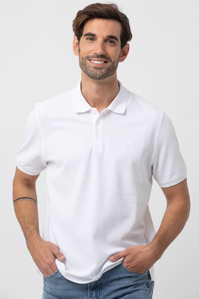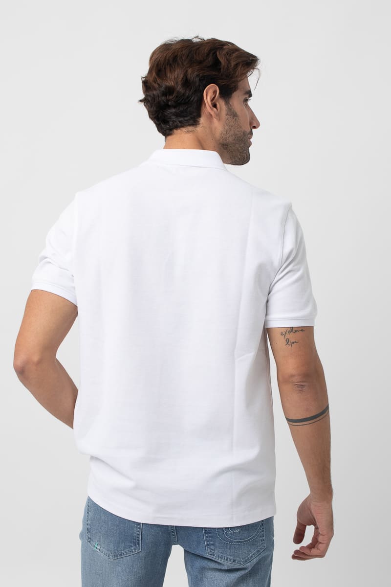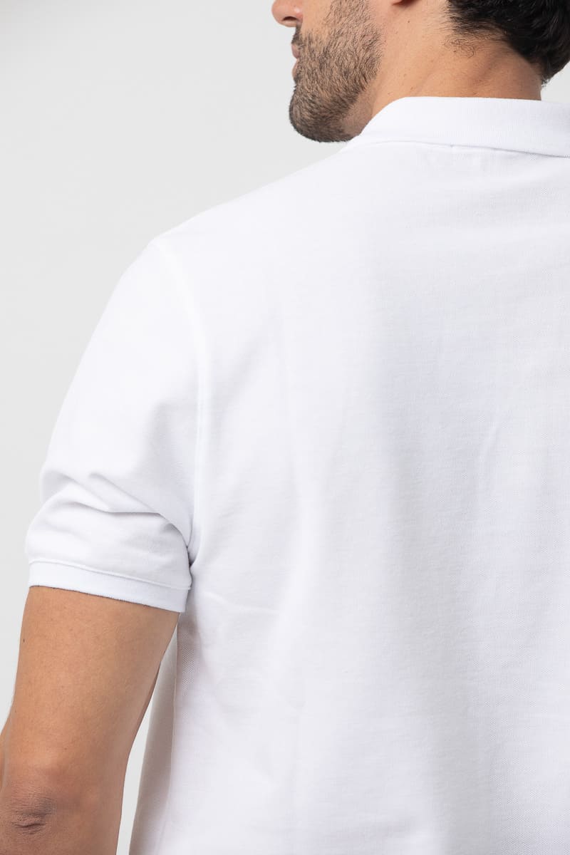 Polo básico estructura de piqué. Corte casual, cuello clásico, cierre mediante tapeta de dos botones, manga corta y bajo con aberturas laterales. Logo de la marca bordado al tono.