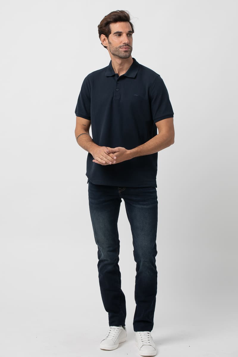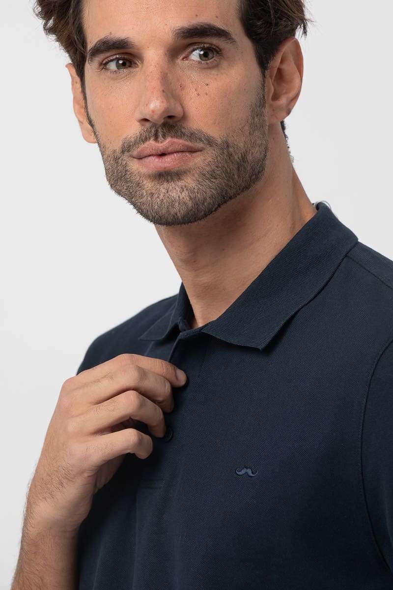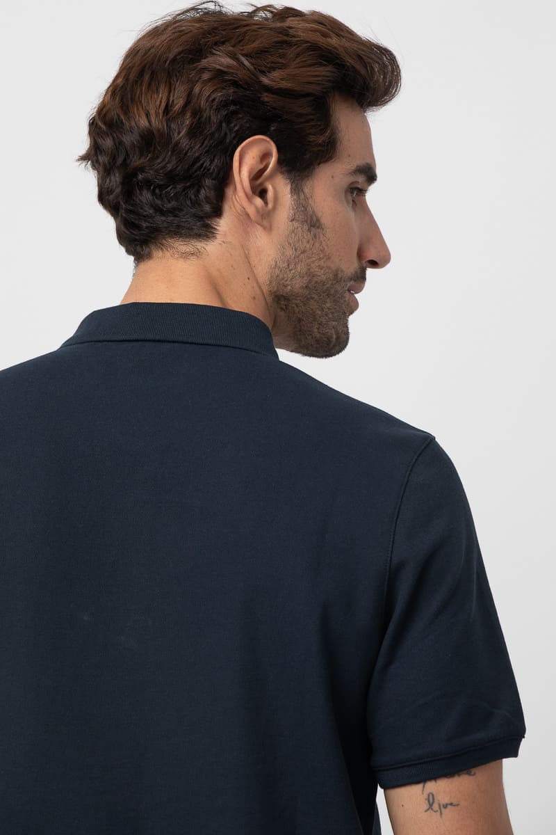 Polo básico estructura de piqué. Corte casual, cuello clásico, cierre mediante tapeta de dos botones, manga corta y bajo con aberturas laterales. Logo de la marca bordado al tono.