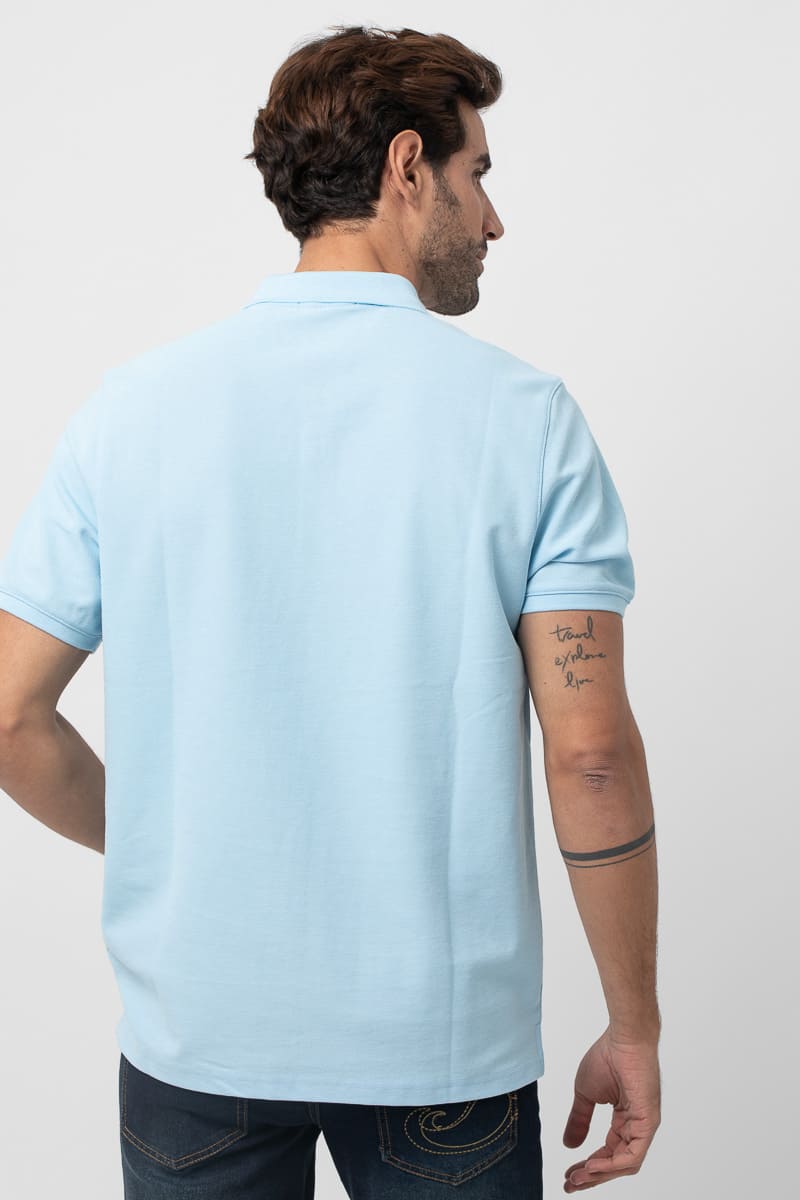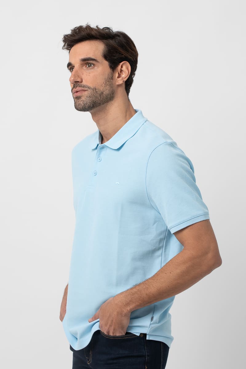 Polo básico estructura de piqué. Corte casual, cuello clásico, cierre mediante tapeta de dos botones, manga corta y bajo con aberturas laterales. Logo de la marca bordado al tono.