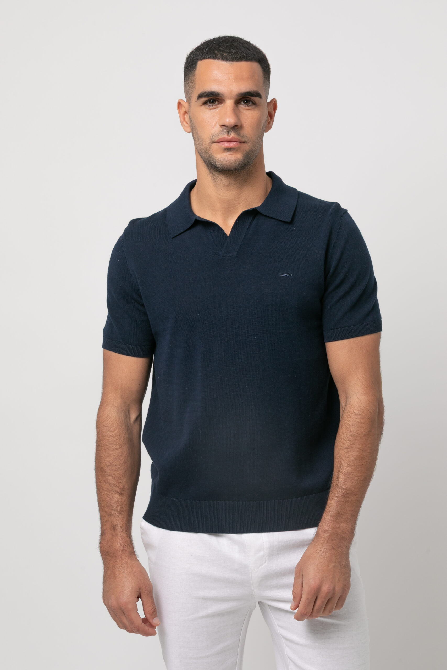 Polo tejido de punto. Tejido mezcla. Manga corta.Cuello polo abierto
