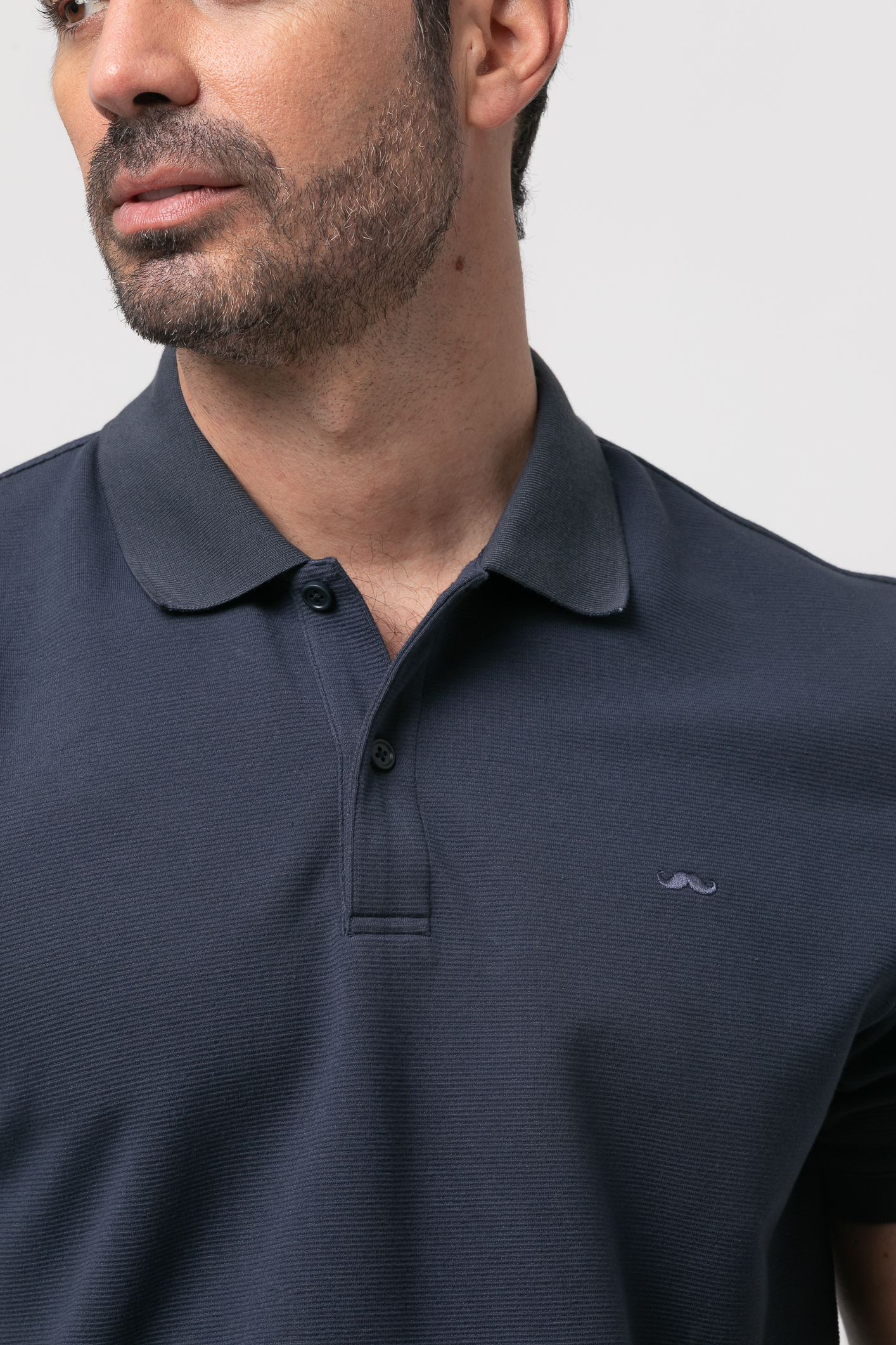 Polo tejido falso liso micro raya. Corte casual, cuello polo, cierre mediante 2 botones, manga corta y bajo con aberturas laterales. Logo de la marca bordado al tono