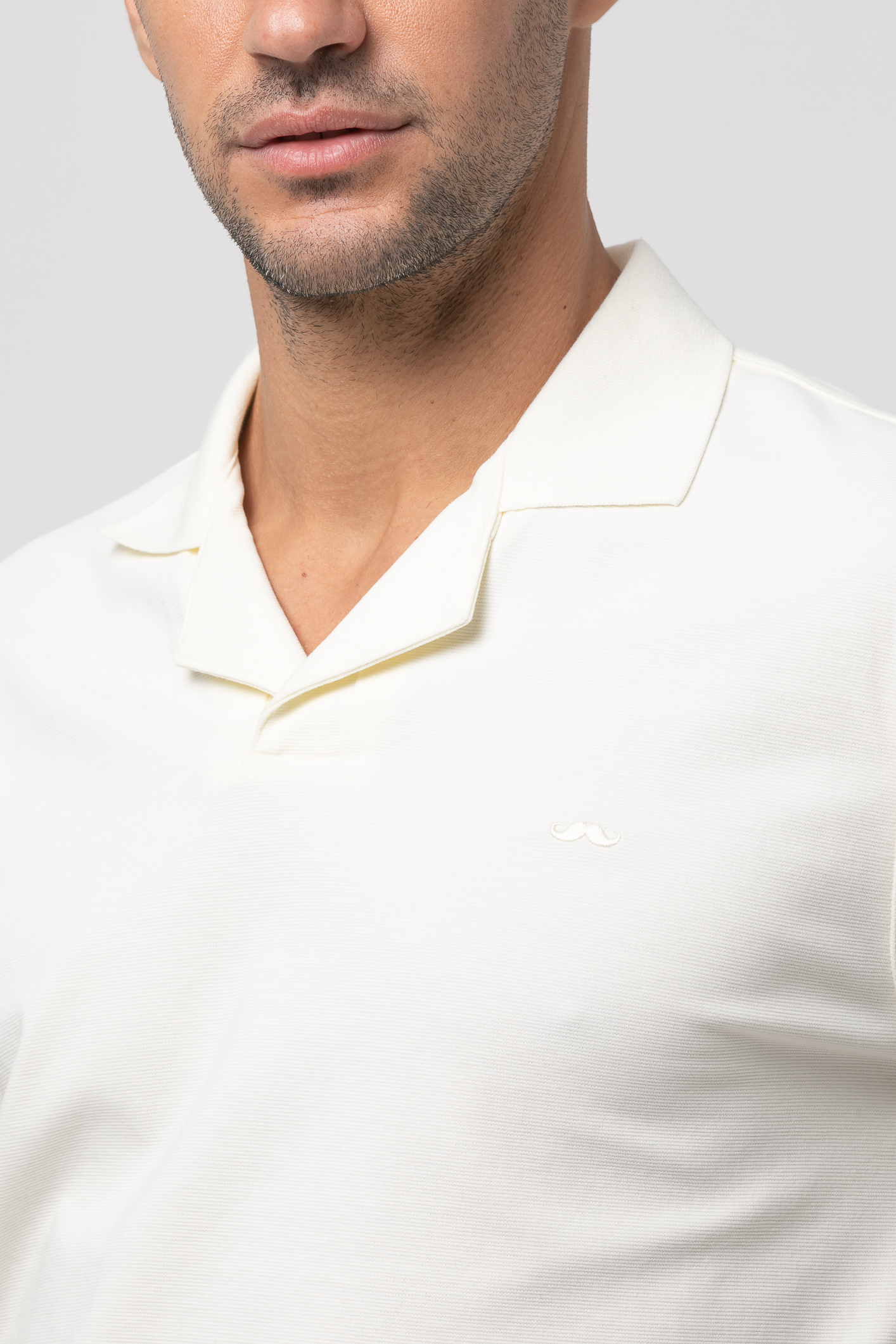 Polo tejido falso liso. Corte casual, cuello polo abierto , manga corta y bajo con aberturas laterales. Logo de la marca bordado al tono