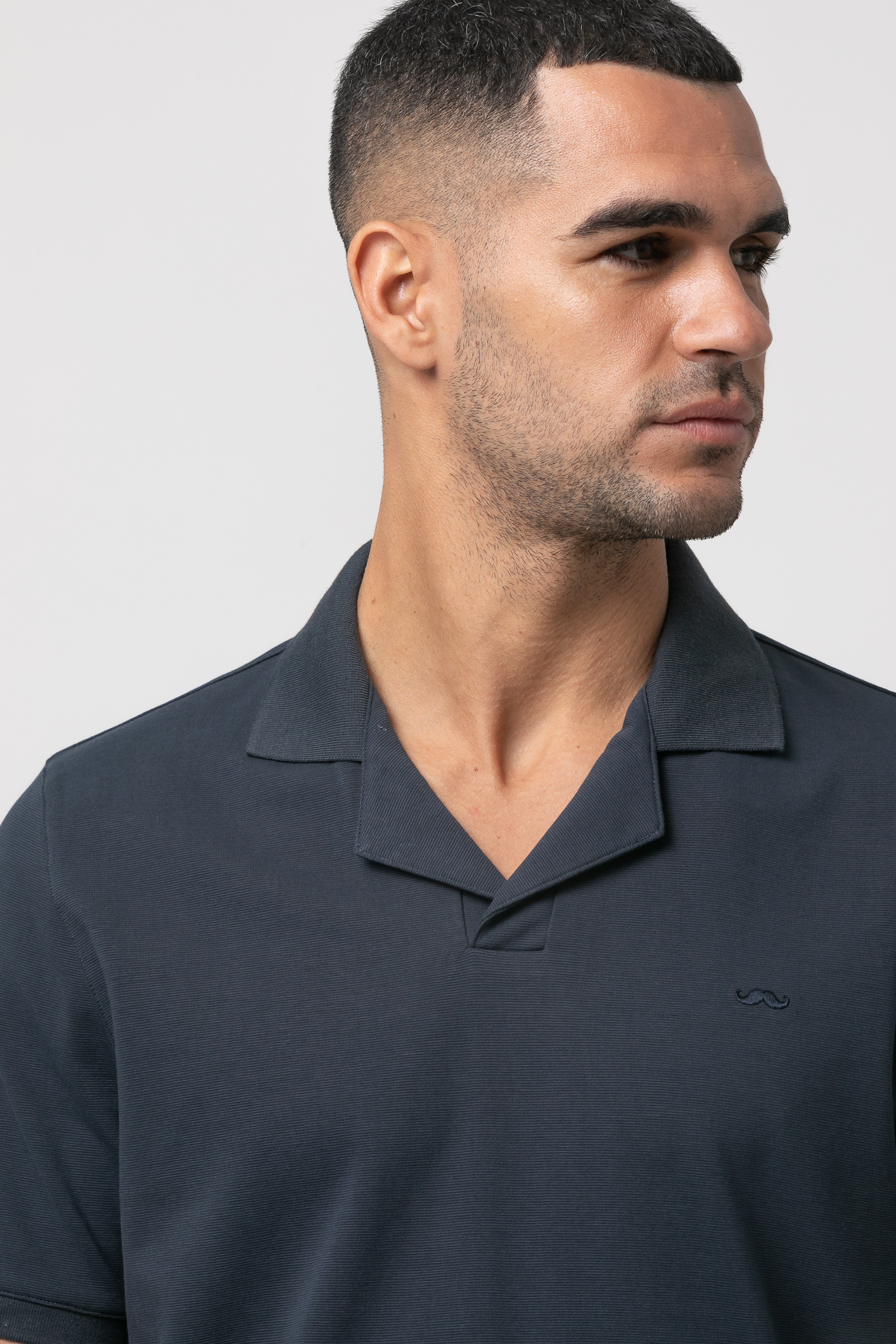 Polo tejido falso liso. Corte casual, cuello polo abierto , manga corta y bajo con aberturas laterales. Logo de la marca bordado al tono