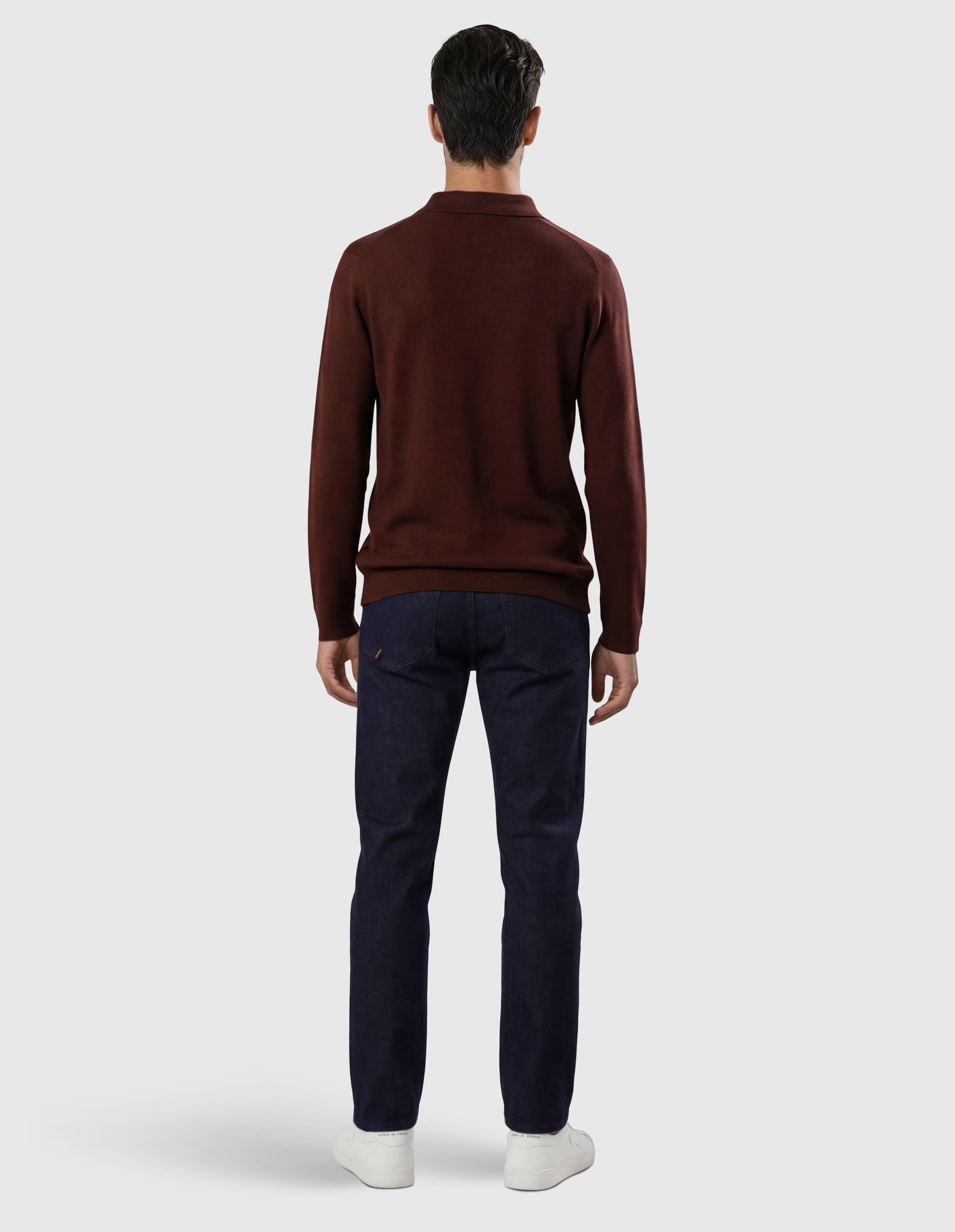 Jersey cuello polo, corte recto con botones. Tejido de punto liso grueso de gran calidad Acabado BCI. Bordado bigote a tono. Acabados corte laser.