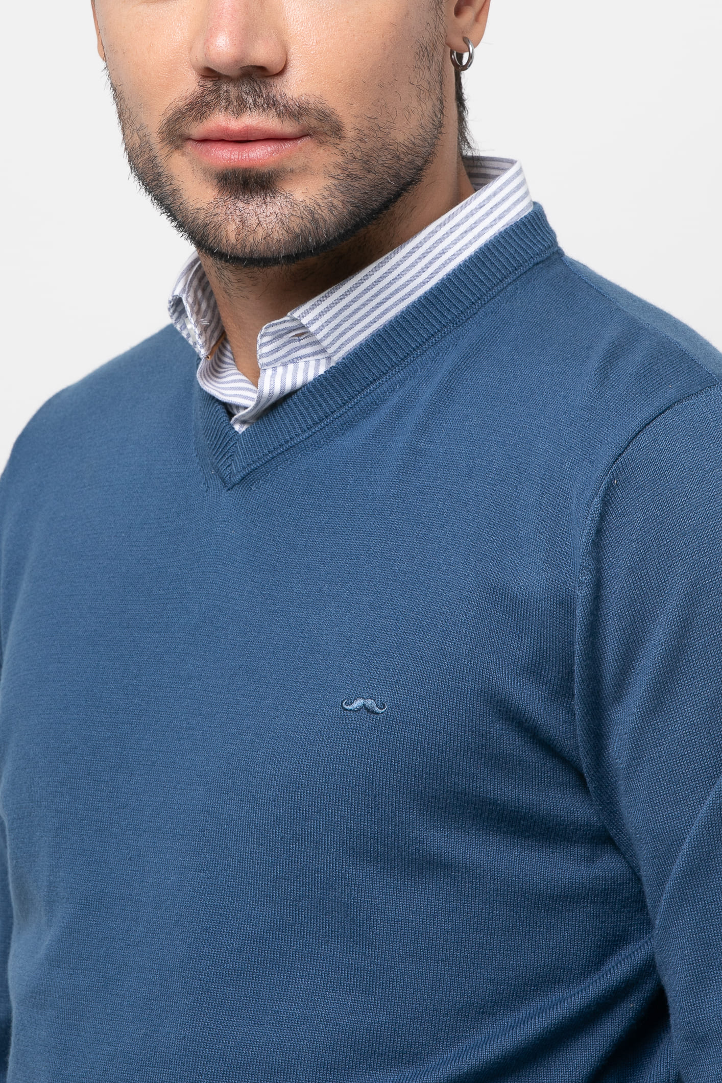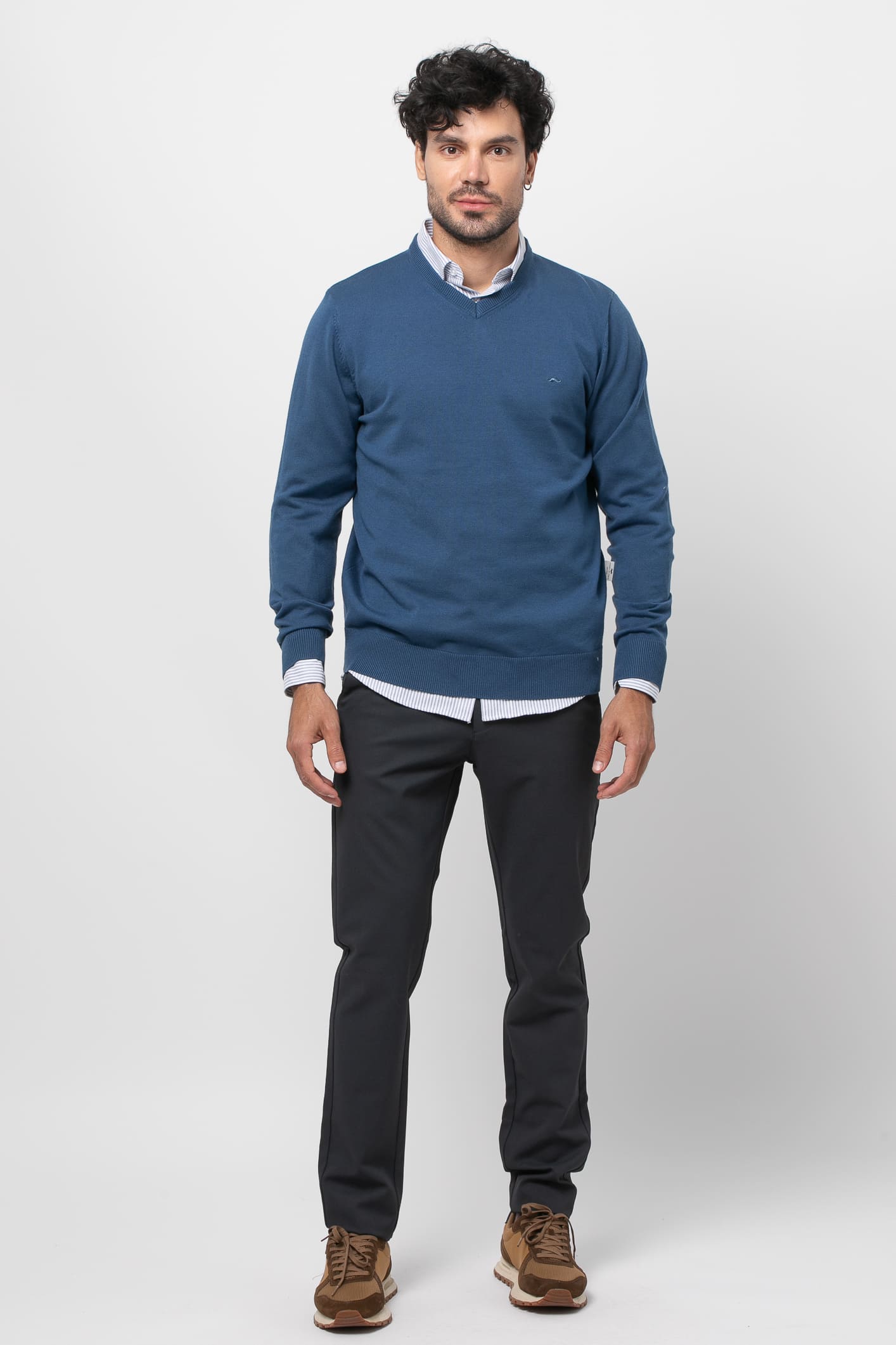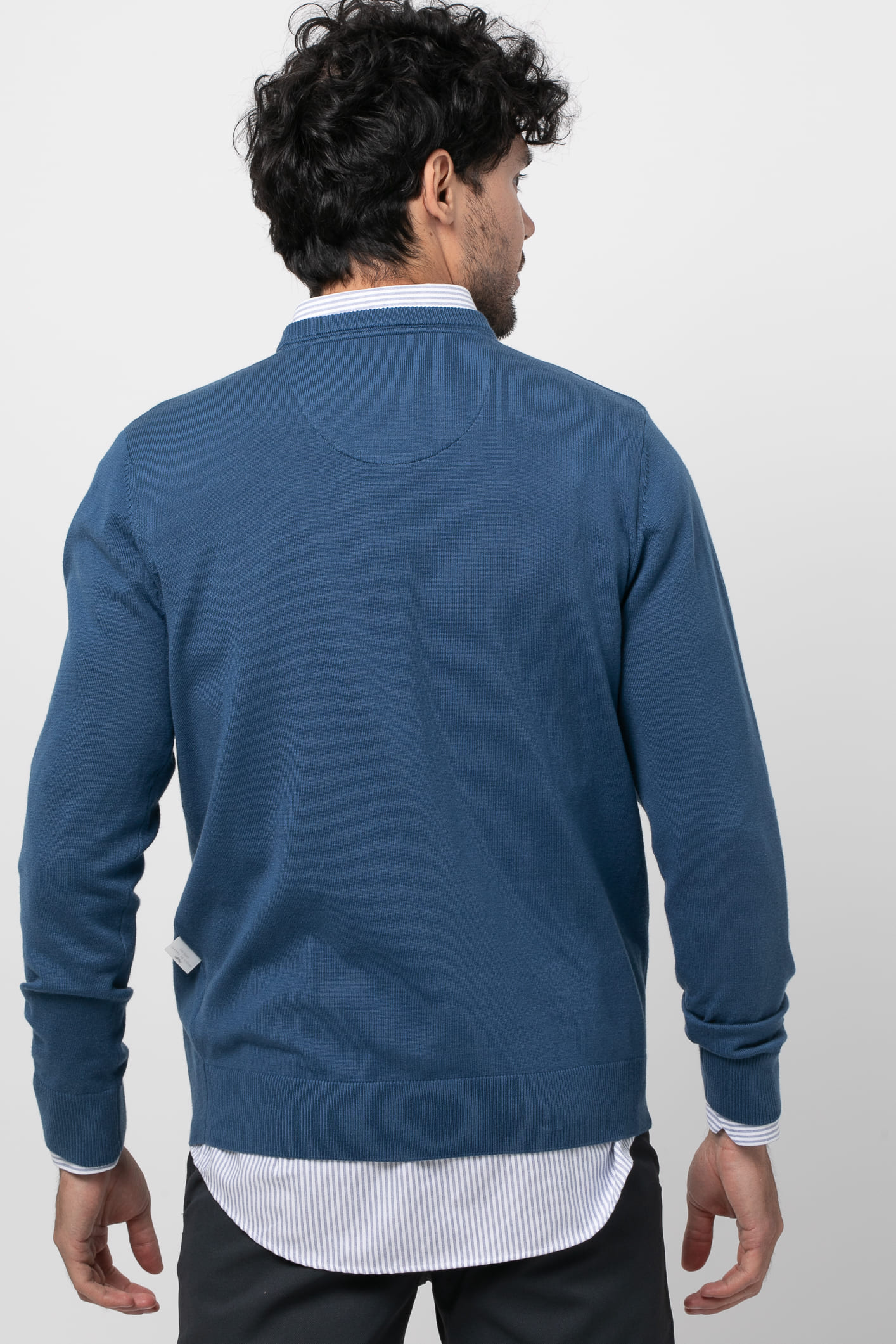 Jersey de corte recto con cuello pico y manga larga. Acabados en rib. Logo de la marca situado en el pecho al tono