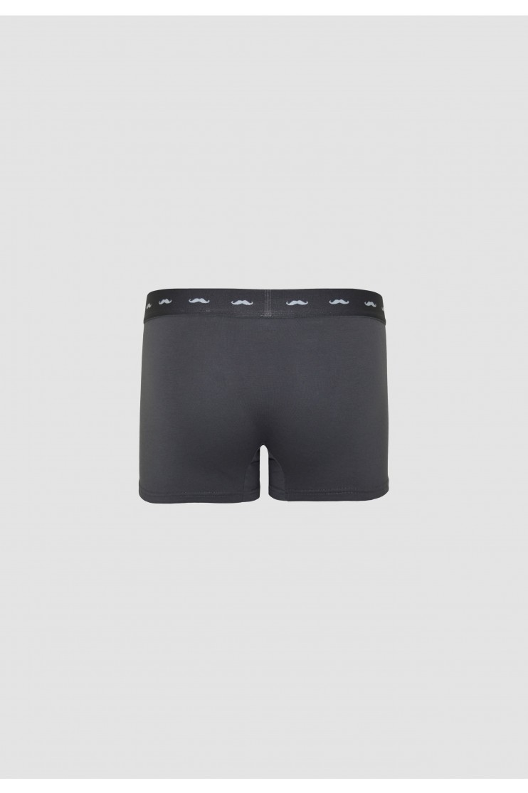Calzoncillo confeccionado en algodón con elastano de gran calidad y confort de pernera corta. Cinturilla elástica con el logo de nuestro bigote. Parte delantera forrada. Diseño liso.