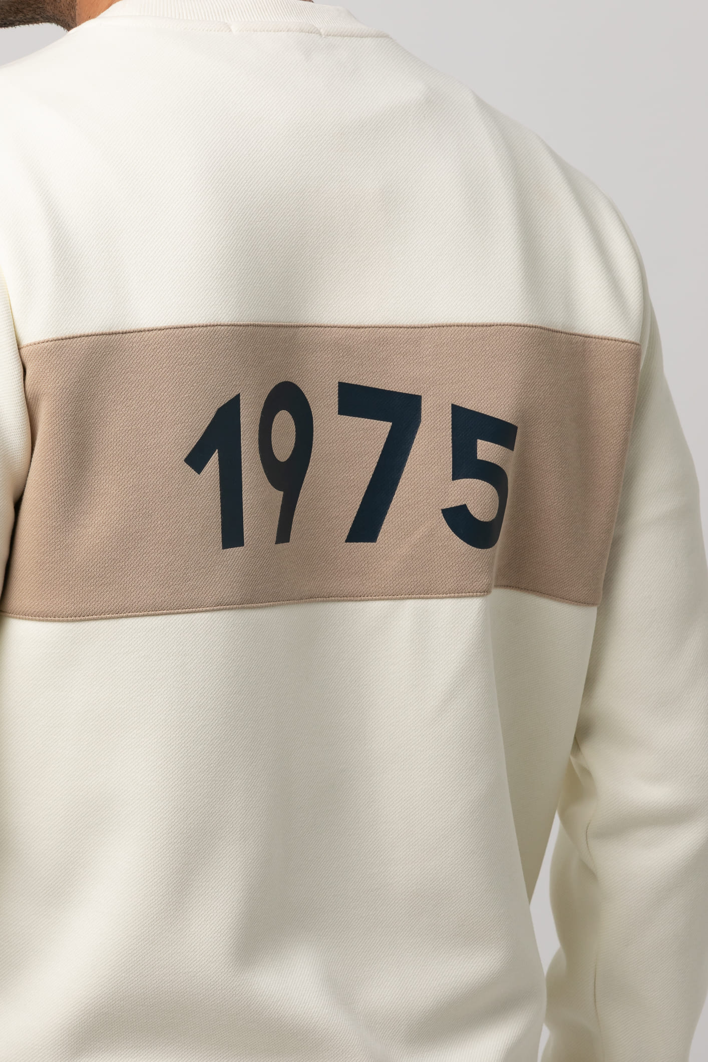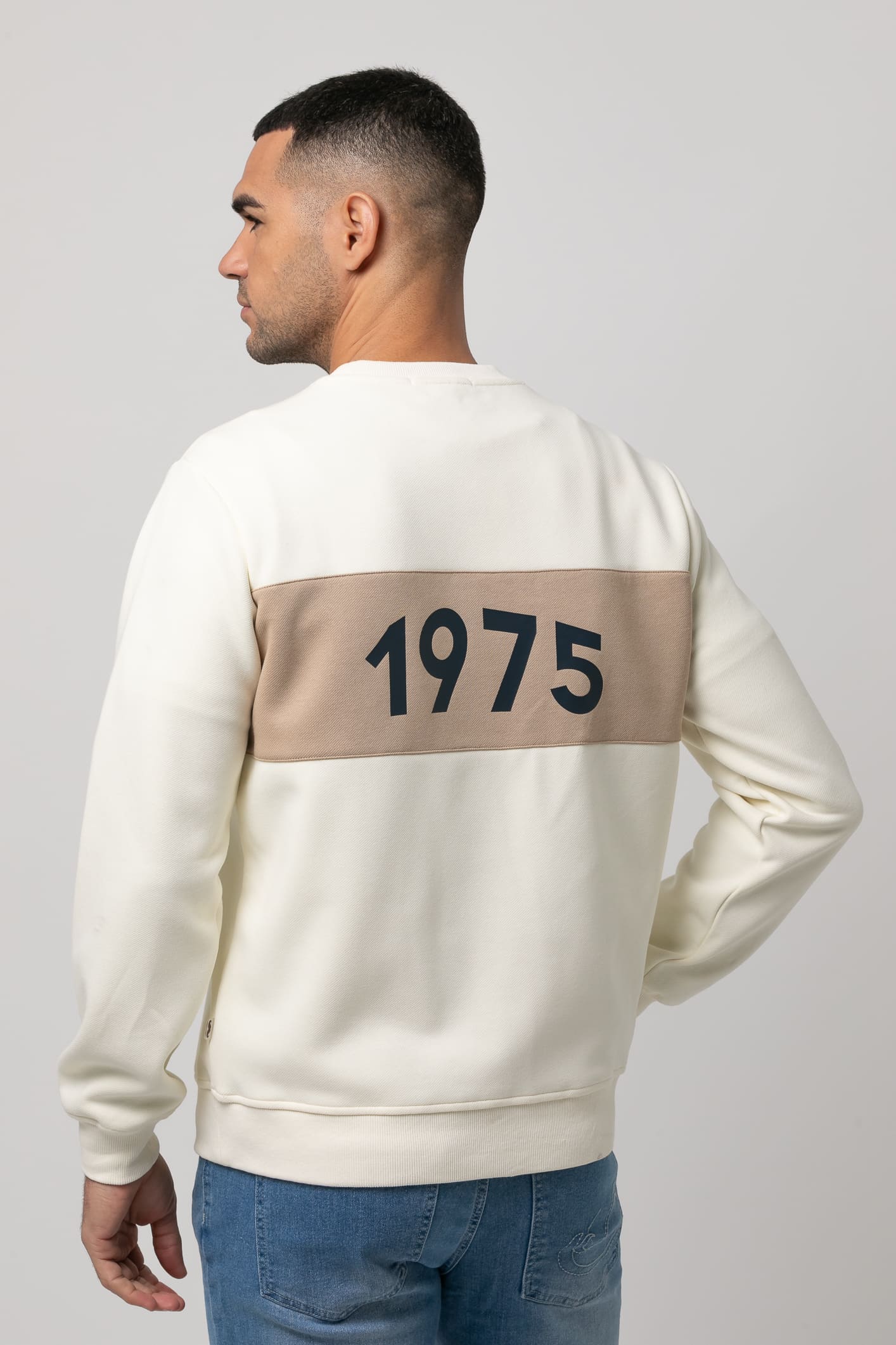 Sudadera de manga larga, cuello caja. Puños y bajo en punto elástico de canalé. Juego de dos colores. Bordado de la marca en el pecho serigrafiado al igual que en la espalda.