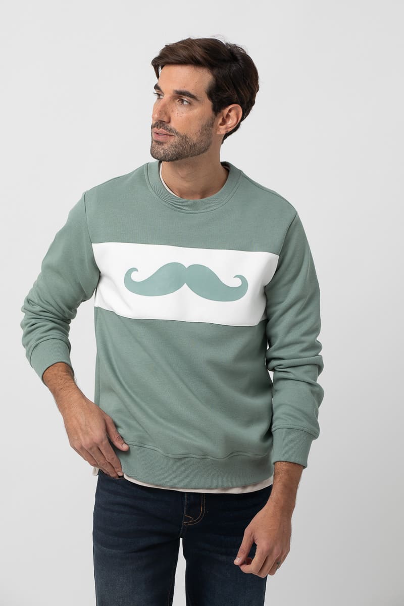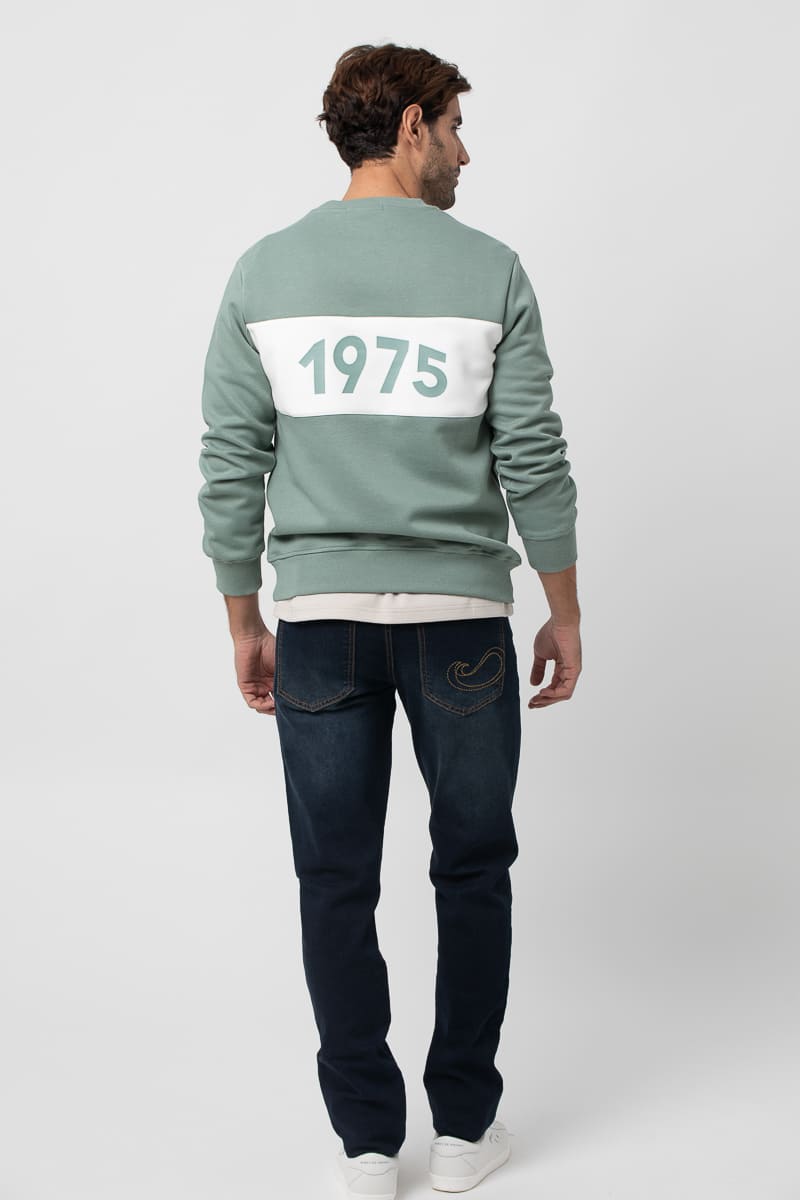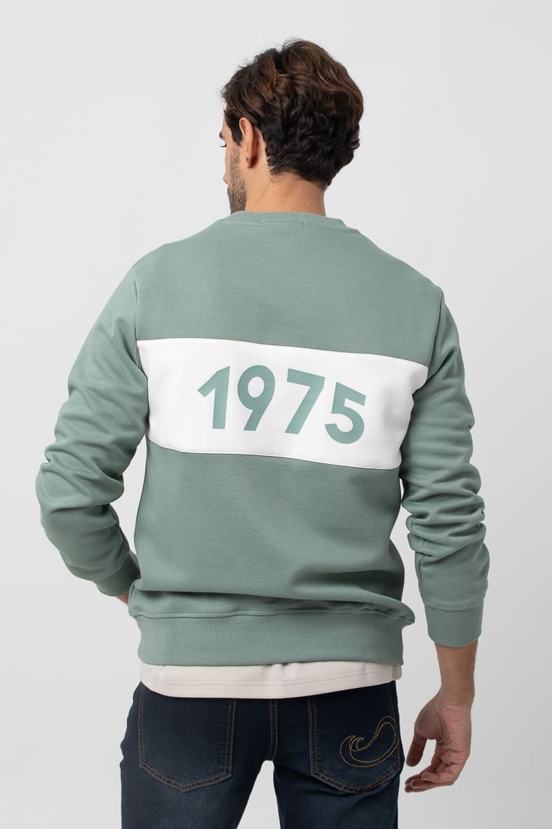 Sudadera de manga larga, cuello caja. Puños y bajo en punto elástico de canalé. Juego de dos colores. Bordado de la marca en el pecho serigrafiado al igual que en la espalda